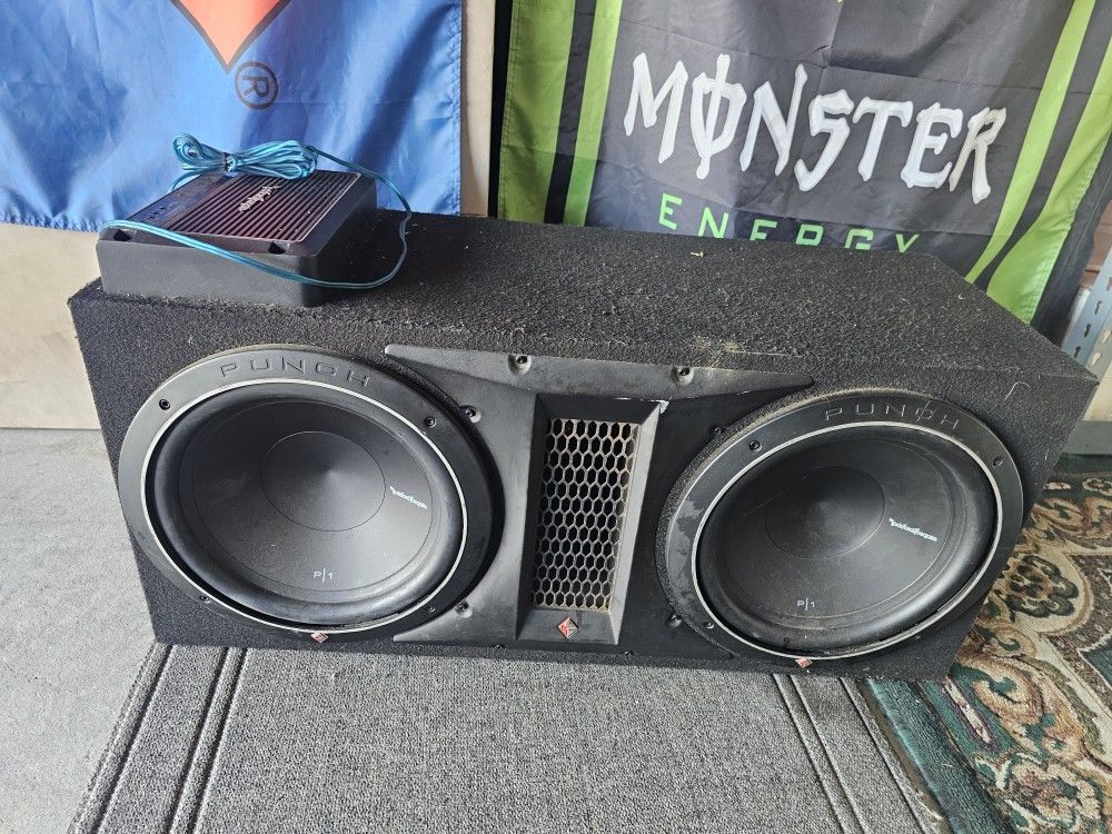 Selling my Factory made Rockford Fosgate 12"inch subwoofer box NO SPEAKERS .... BOX AND AMP ONLY? I'm Selling The Rockford Fosgate amp with it...The box holds 12inch subs and in perfect condition..The amp works very well for it size.. Asking $200 for box and amp or best offer.. SPEAKERS ARE SOLD ALREADY..If add is up yes its available