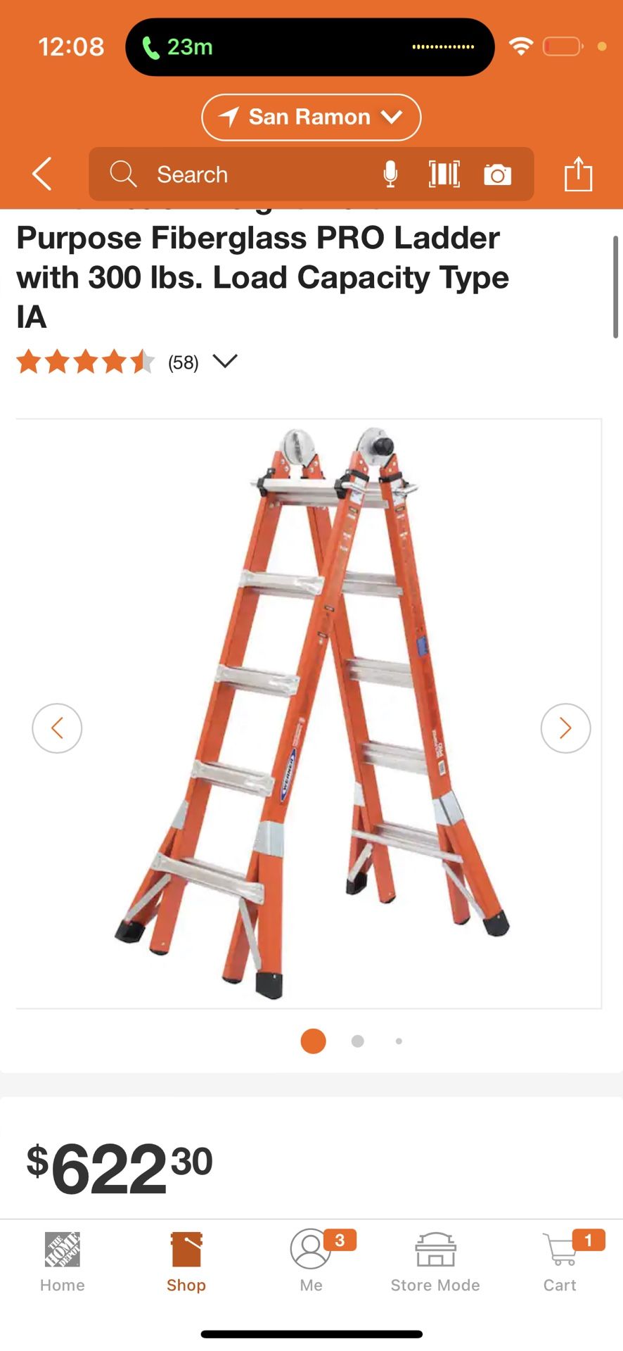 Check price before making offer 22 ft. Reach Height Multi-Purpose Fiberglass PRO Ladder with 300 lbs. Load Capacity Type IA