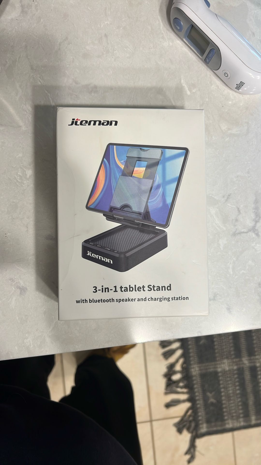 Jteman 3-in-1 Tablet Stand with Bluetooth speaker and charging station New in box, never used