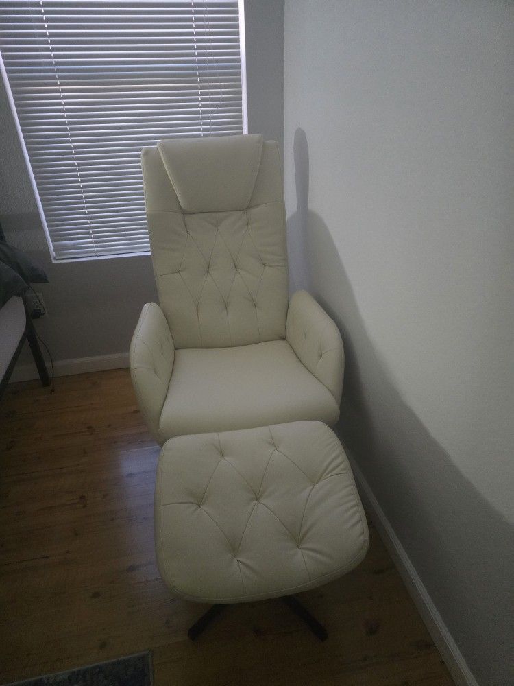 Cream (off white) chair with ottoman. Purchased for nursery room but did not work out. Literally brand new. Pick up in Ahwatukee 40th and Chandler Blvd