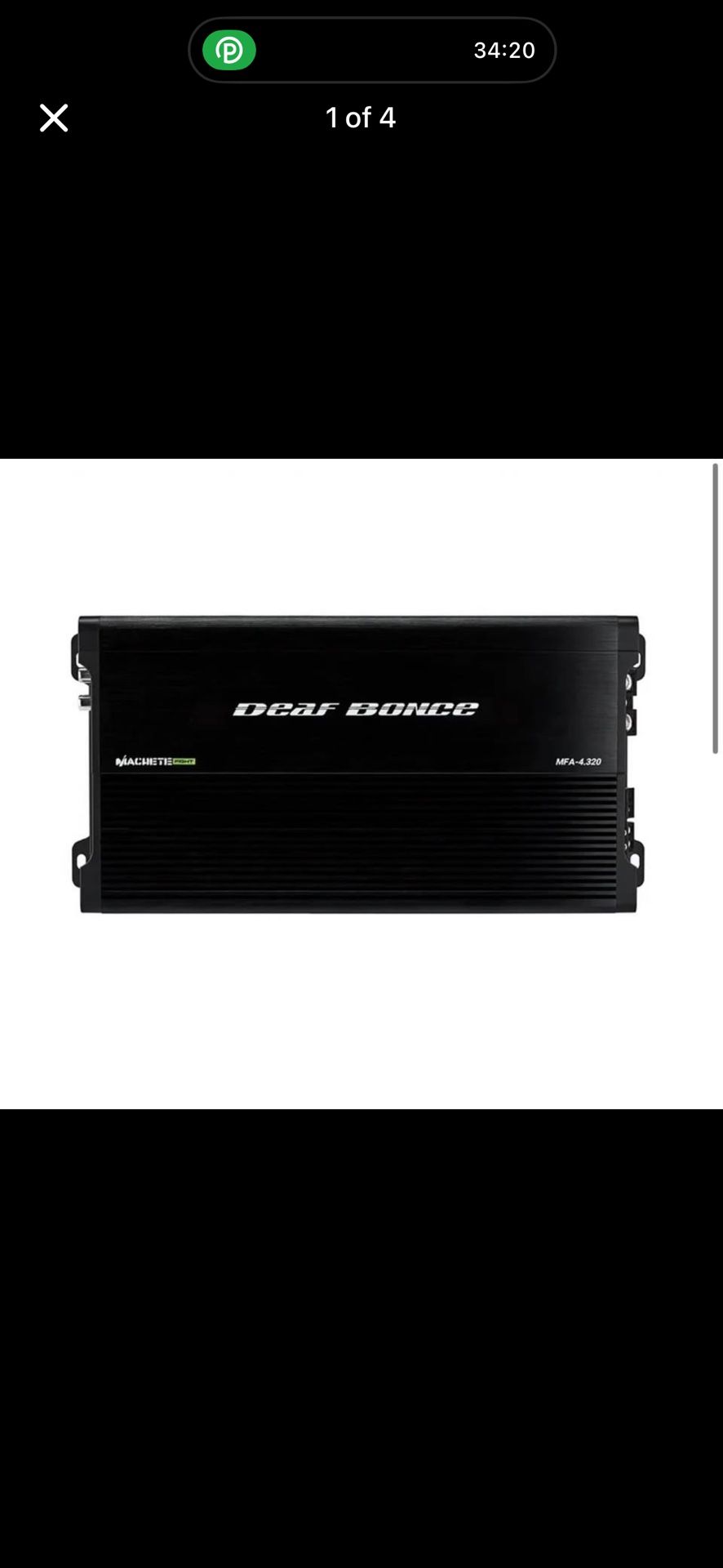 Im selling my deafbounce 4 channel amplifier 4.320 $300 firm no less This amp is true rms no bullshit. Great for high watt speakers Easy 2000 watts I had this amp on my current Sound system only reason I’m selling is because I’m got rid of my car. I was pushing 8 deaf bounce Arnold’s no problem. Very great Amp with clear voice and power Hate to sell, I’m located in Glendale. I’m also selling a down4sound 2channel bass amp 1500 watts rms if interested. Very powerful amp as well.