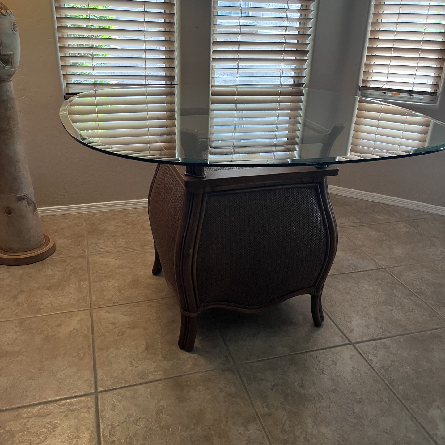 Dining Table Rattan and Wicker glass top 48 inches like New