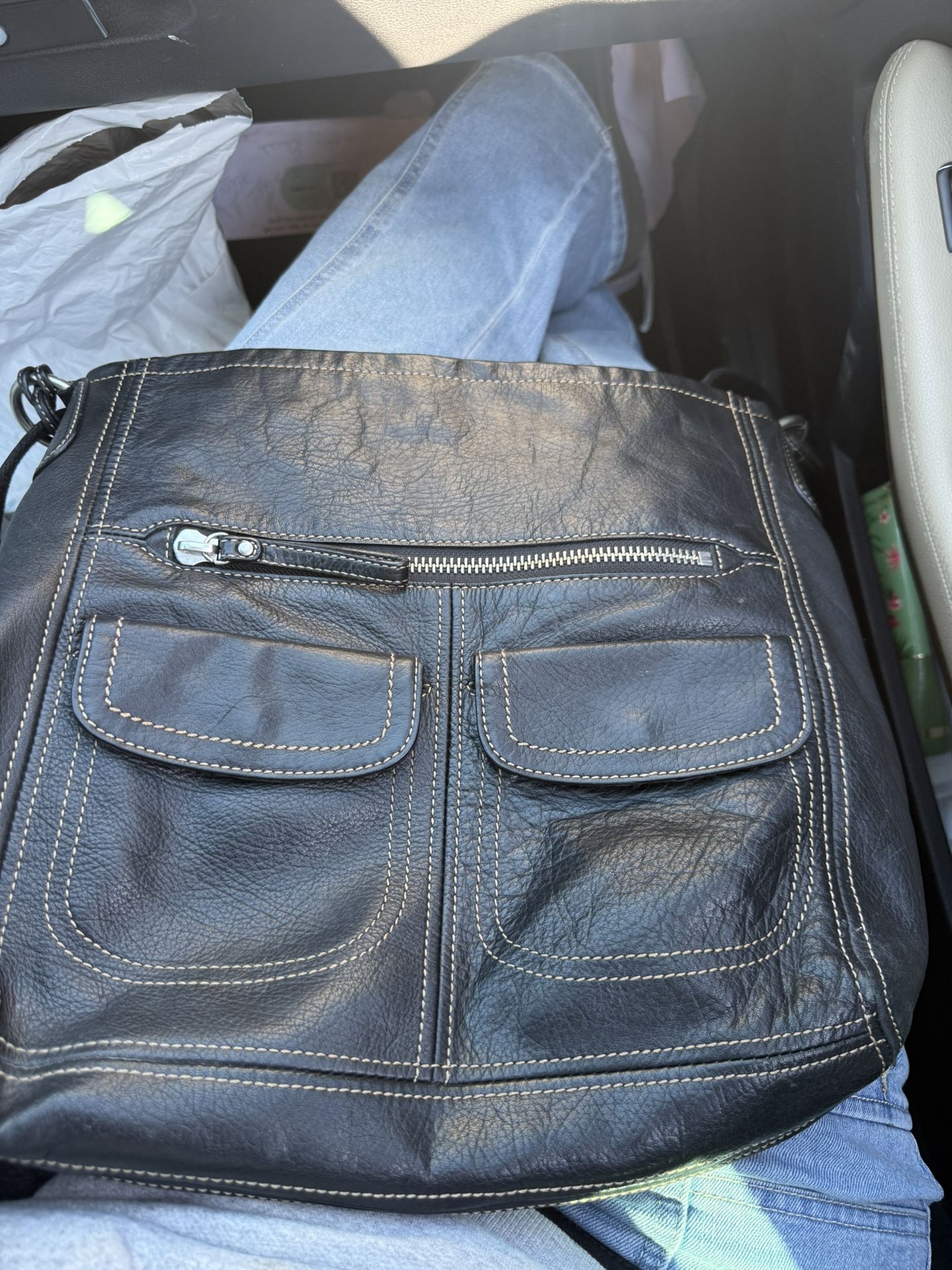 Never used, Fossil Genuine Balck Leather Crossbody/Shoulder bag!! Has a vack open pocket, 3 front Pockets, 1 is a large front zipper pocket, the other two front pockets have a snap button closure! Zipper closure, zipper pocket inside and open pockets inside. Over $100 online but I’m selling for $40