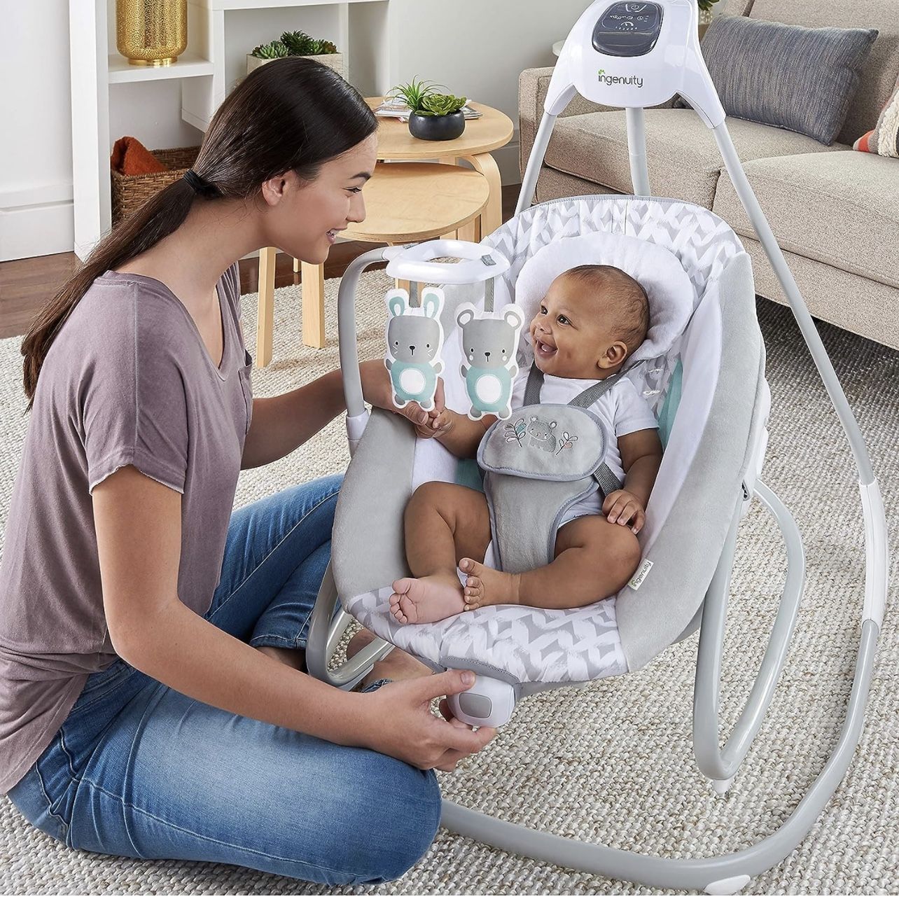 New in box! Ingenuity 2-in-1 SimpleComfort Lightweight Compact 6-Speed Multi-Direction Baby Swing & Rocker, Vibrations & Nature Sounds, 0-9 Months 6-20 lbs (Raylan) Retail price 140$