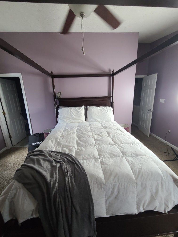 Queen sized wood bed, queen size pillow top mattress, box springs . Negotiable Minor wear and tear. Must pick up and bring tools to break down. Must bring assistance for lifting and loading.