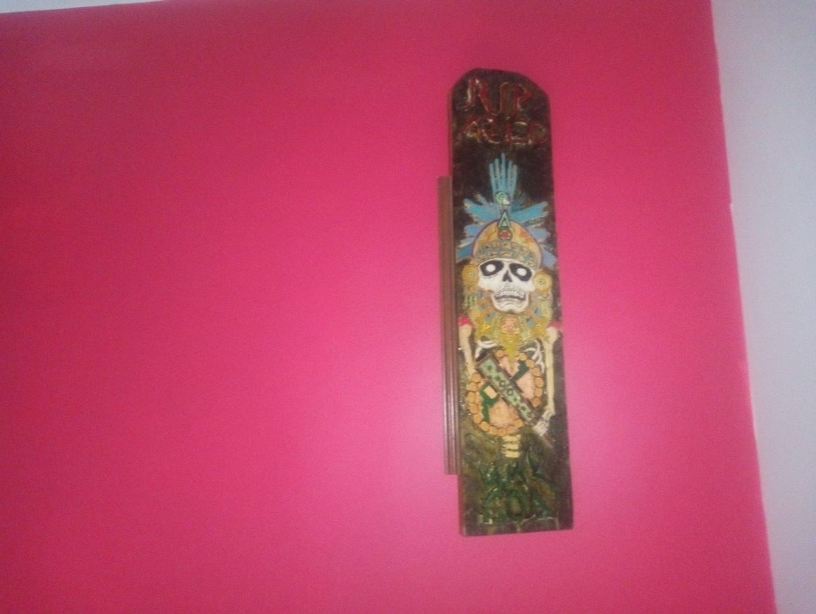 Outside Or Inside Wood Wall Decoration. 3D Affect R.I.P Aztec War Gods. One Of A Kind Hand Carved