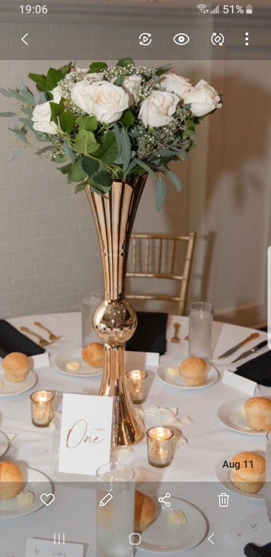 24 inches tall, high quality golden glass vases. Total 17 pieces for 280$ obo. Regular price is 40$ per piece Perfect for wedding or any other occasion.