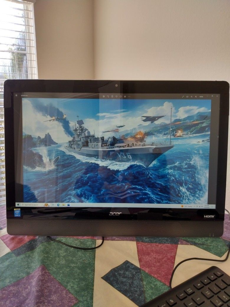 Hi, Up for sale is Fast and the reliable computer is working great. Brought online. Due to the shipping problem there are lines Cracks on the protection glass. ...The screen inside has no cracks and works perfectly. Cracked outside glass doesn't affect the PC performance. You can replace cracked glass later. *** Two HDMI available on this PC , so you can connect it to TV or Monitor. ******* Spec: Model: Aspire AU5-620-UB10 Intel Core i5 4200M (2.50GHz) 4-cores. 8GB DDR3. 500GB Hard Drive 24" Attractive IPS display 1920 x 1080 (Full HD). Windows 10. Intel HD Graphics 4600. 2x HDMI(HDMI in, HDMI out). 2x USB 3.0, 3x USB 2.0, SD card reader. 802.11n Wi-Fi, Ethernet, Bluetooth. DVD burner. No touch screen. Keyboard mouse included. Power adapter included.