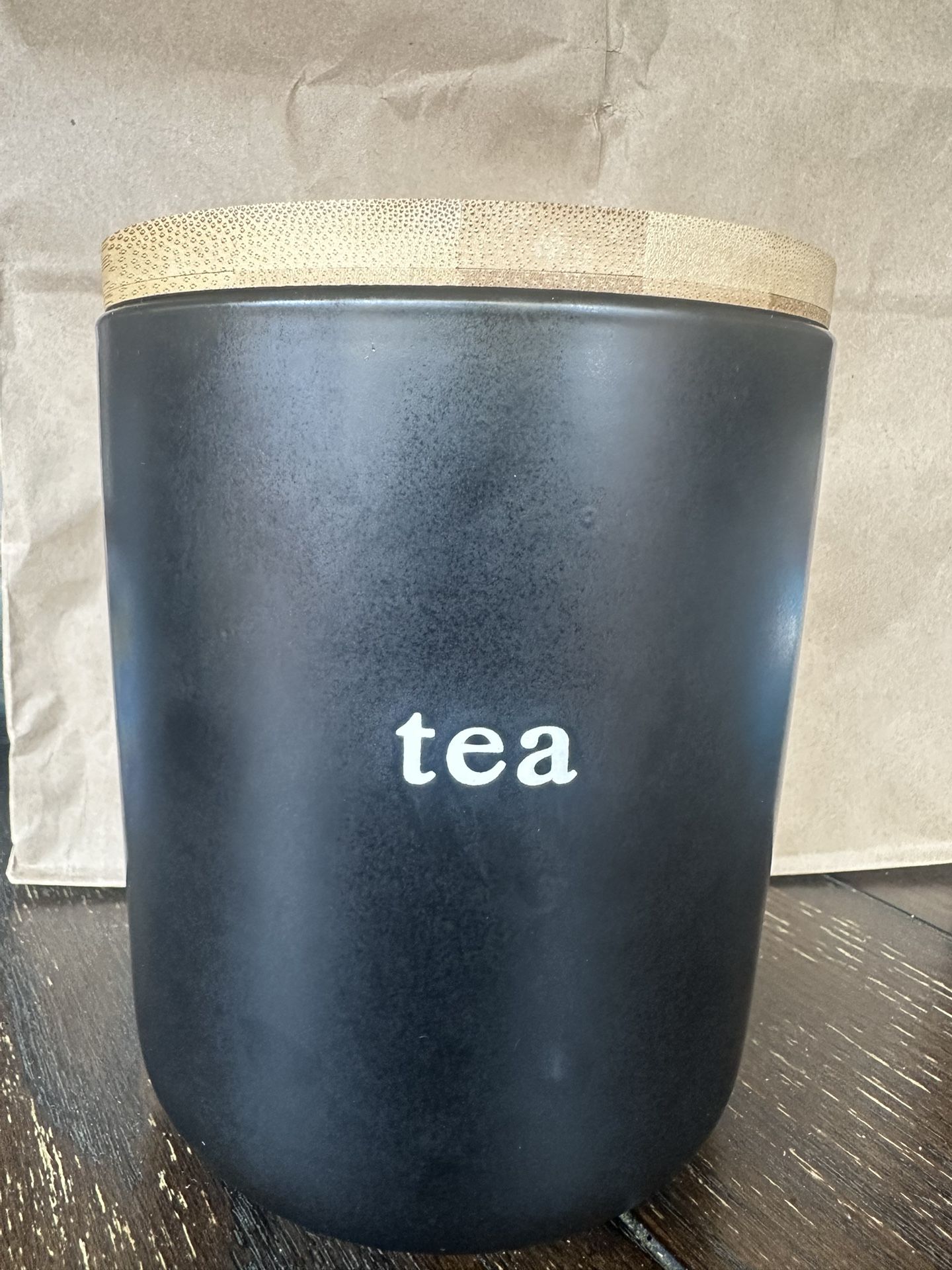 Tea container black and wood Great condition Asking $5 Pick up or meet halfway