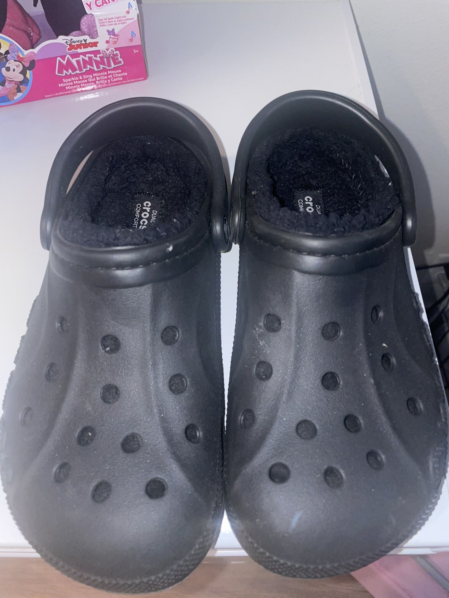 Crocs black New pair size 8 $20 Used pair size 7 charms included $10