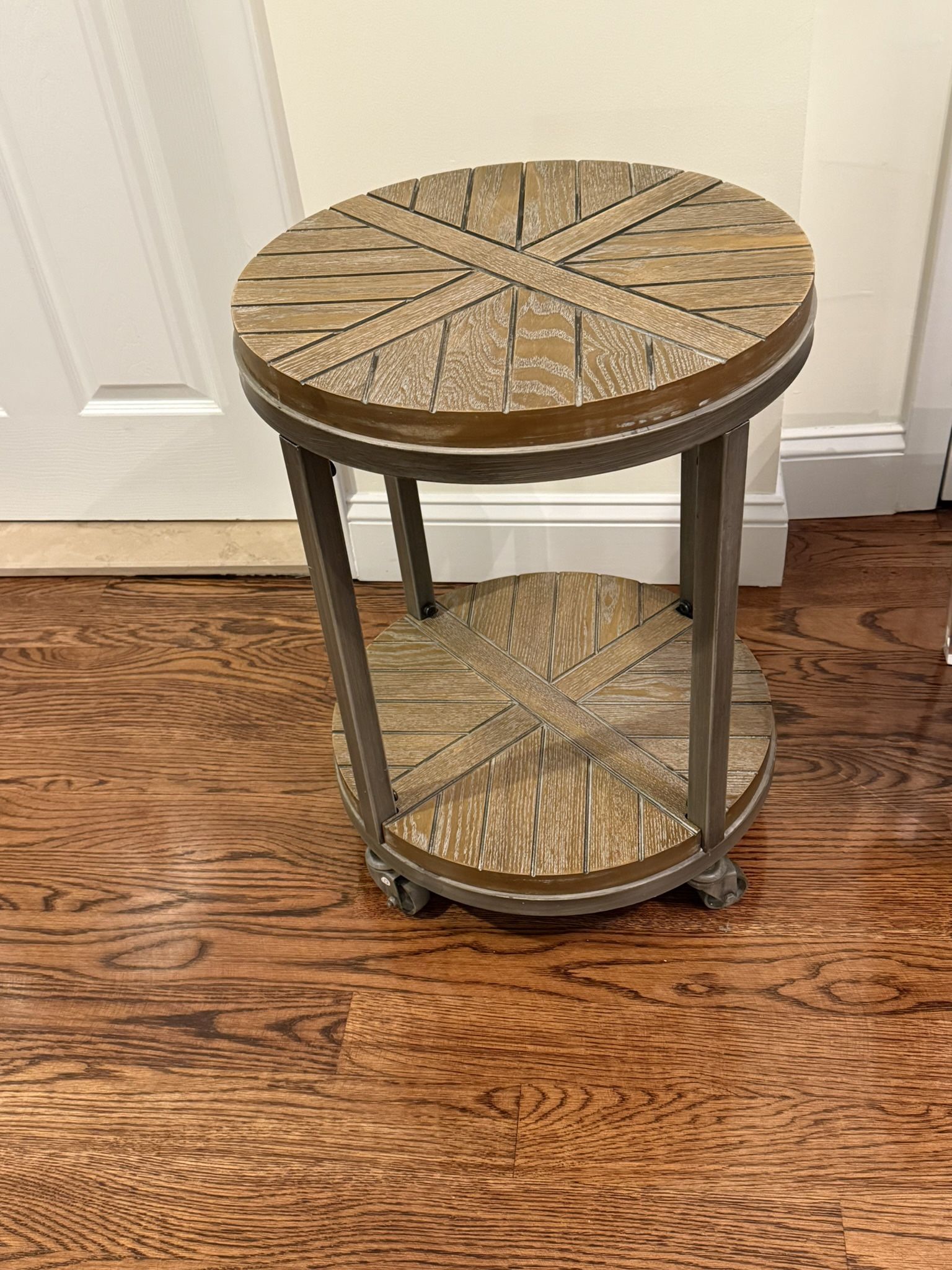 Round end table with wheels. Like new from non smoking home. 18” wide, 25” high. Pick up in Merrick
