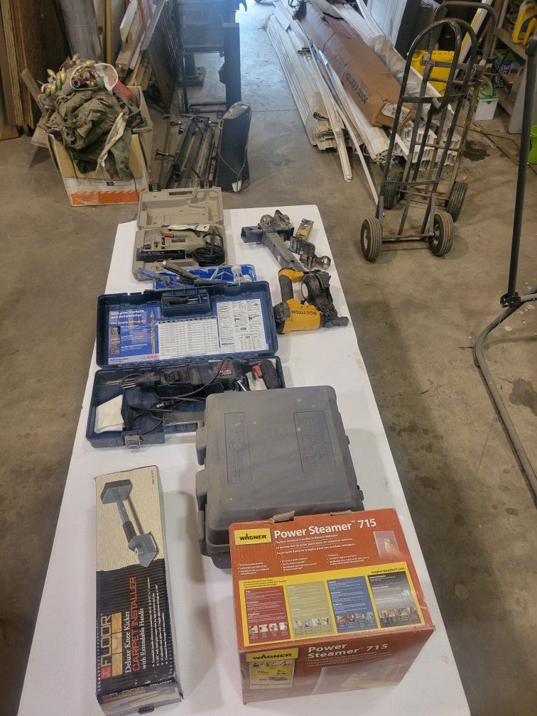 Porta slitter - $ 250 5 ladder jacks - $ 25 per jack 4 roof jacks - $ 40 for all Crane tile cutter - $ 185 Torch lines -$ 25 2 Reese hitches - $ 40 Roofing nail gun - $ 125 Jig saw - $ 20 Bulldog hammer drill - $ 150 Have more items to sale also just ask or meet me to see all
