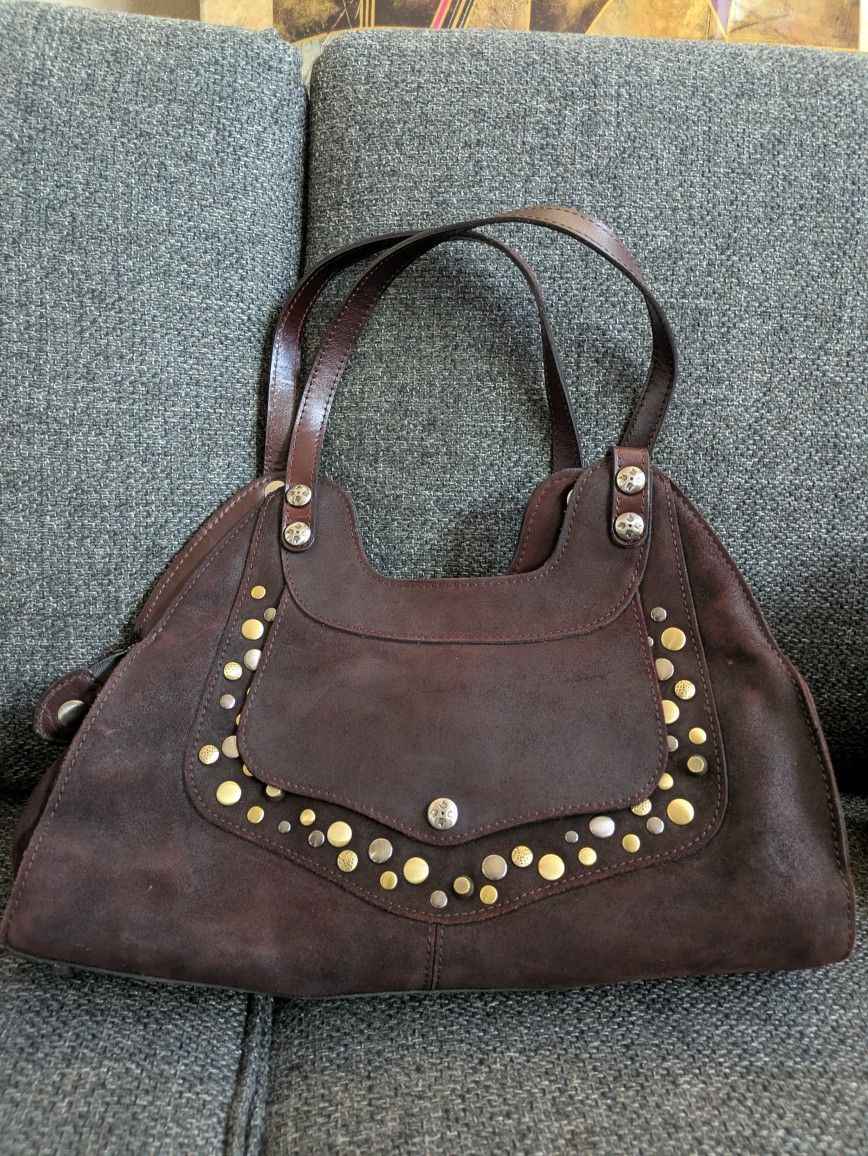 Patricia Nash Brown Suede metal beaded purse. Dimensions: 15" Long, 10 1/2" High, 3" Wide. Great condition only used once