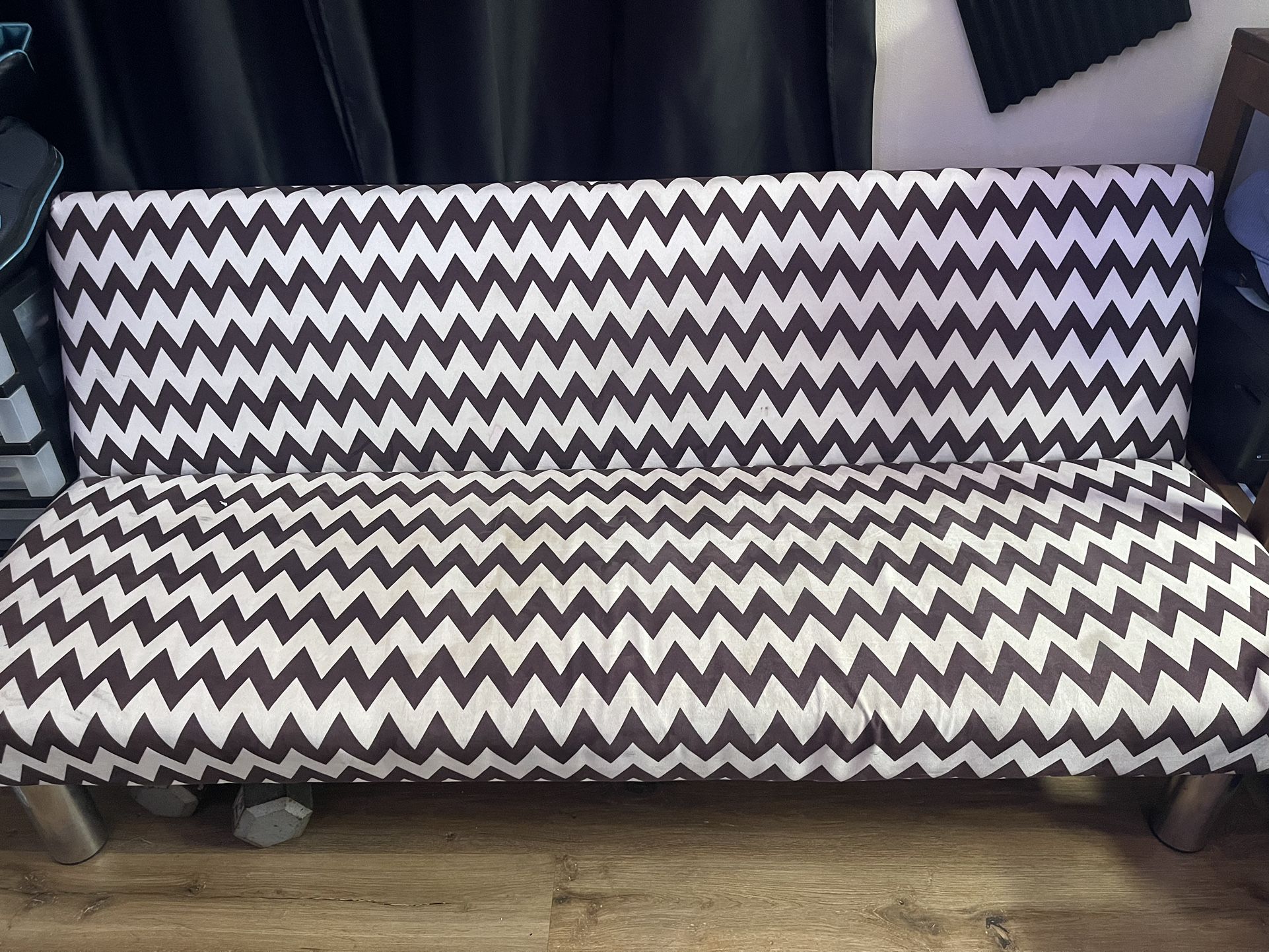 Moving so need to make space! This is a fun pull out futon with a fun pattern! 68” length 32” deep