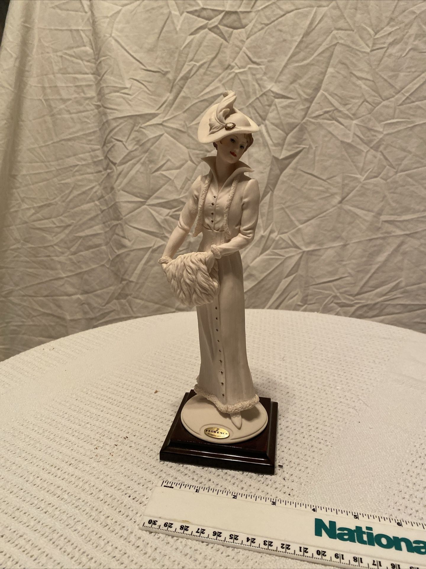 This exquisite Armani figurine is a must-have for any collector. Crafted in Florence, Italy by the renowned artist Giuseppe Armani, this figurine is a true masterpiece. The intricate details and lifelike features of the piece make it a perfect addition to any decorative collection. The figurine, titled "Coquette," depicts a noblewoman with a elegant hat and a graceful pose. Made from high-quality materials, this piece is a testament to the skill and dedication of the artist. Whether you are an Armani enthusiast or a collector of decorative figurines, this piece is sure to impress. The amazing details the artist, from the beautiful blue eyes to the perfectly painted lips and each fold of clothing is stunning!