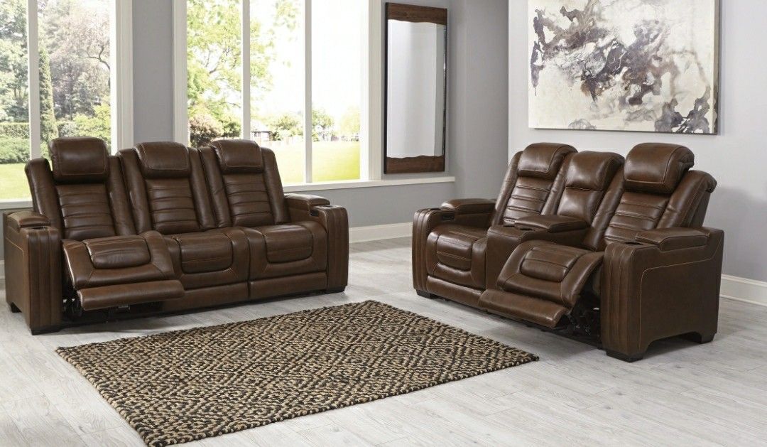 [EXCLUSIVE] Backtrack Chocolate Leather Power Reclining Living Room Set