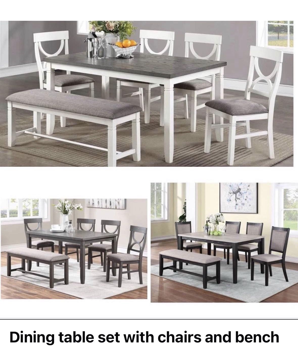 Dining table set with chairs and bench