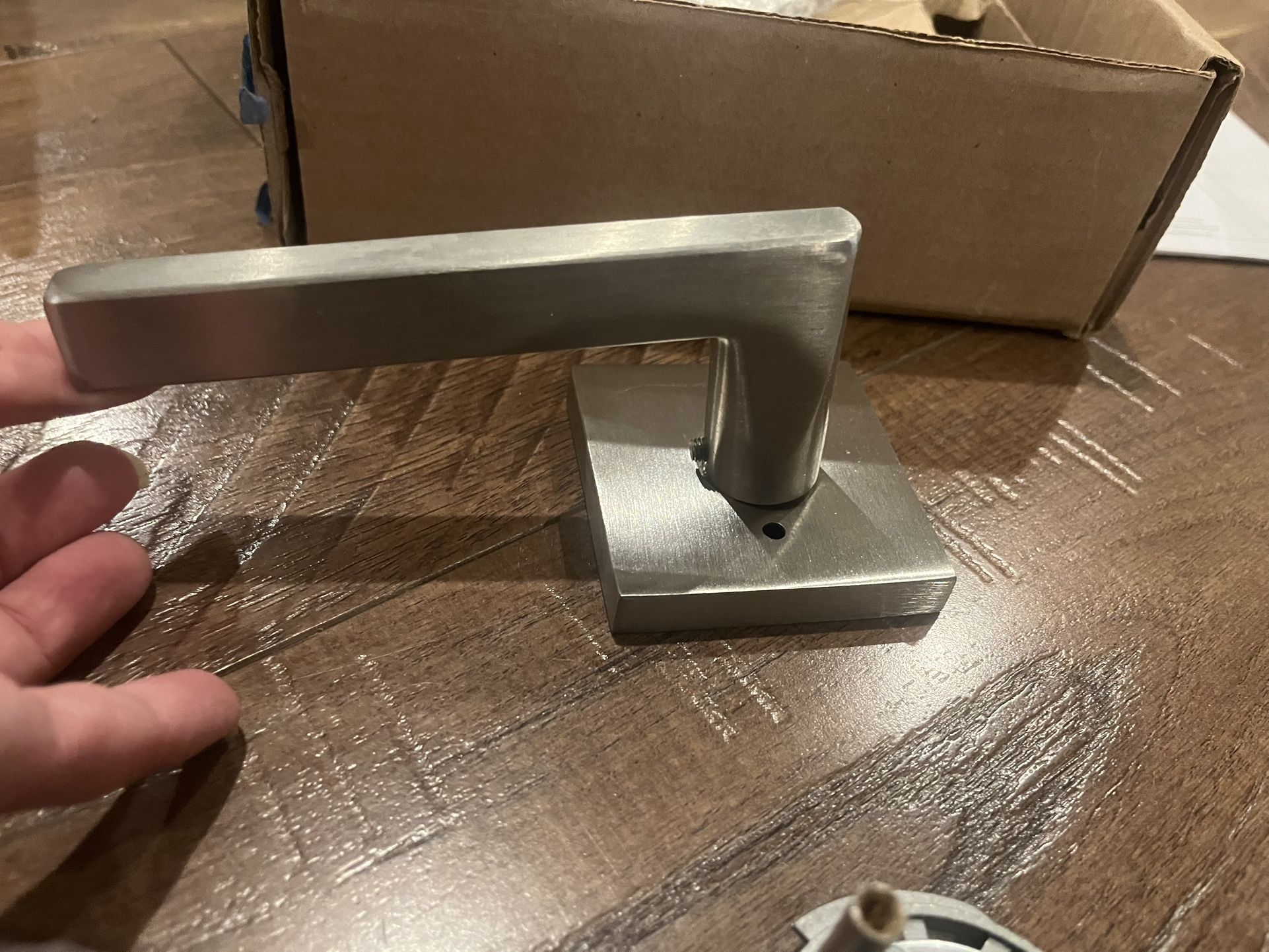 Baldwin Privacy door handle in satin nickel. Never installed. All pieces together. Nice handles Item # 5162.056.PRIV Have 4 available. $50 per handle. Pickup in Snohomish