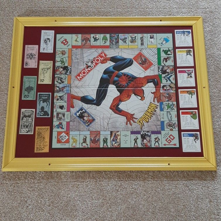 Spiderman monopoly game. Framed 25 3/8 × 37 1/2. If interested send name and number and we can make arrangements. Cash pick up only.
