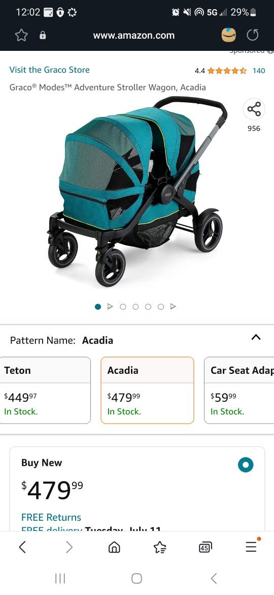 Brand new in box. Priority to first pick up. Push/pull Stroller wagon with canopies, snack tray and footwell