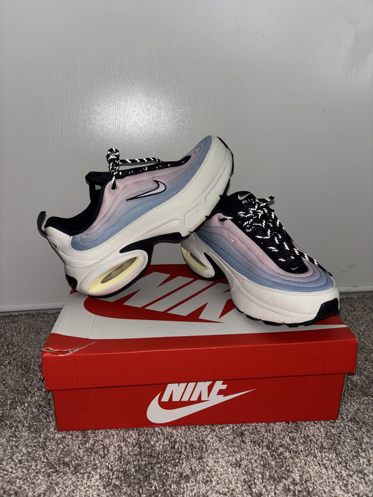 They’re size 9. I wear 8.5 in sneakers & they fit perfect. They’ve been used 2 times.