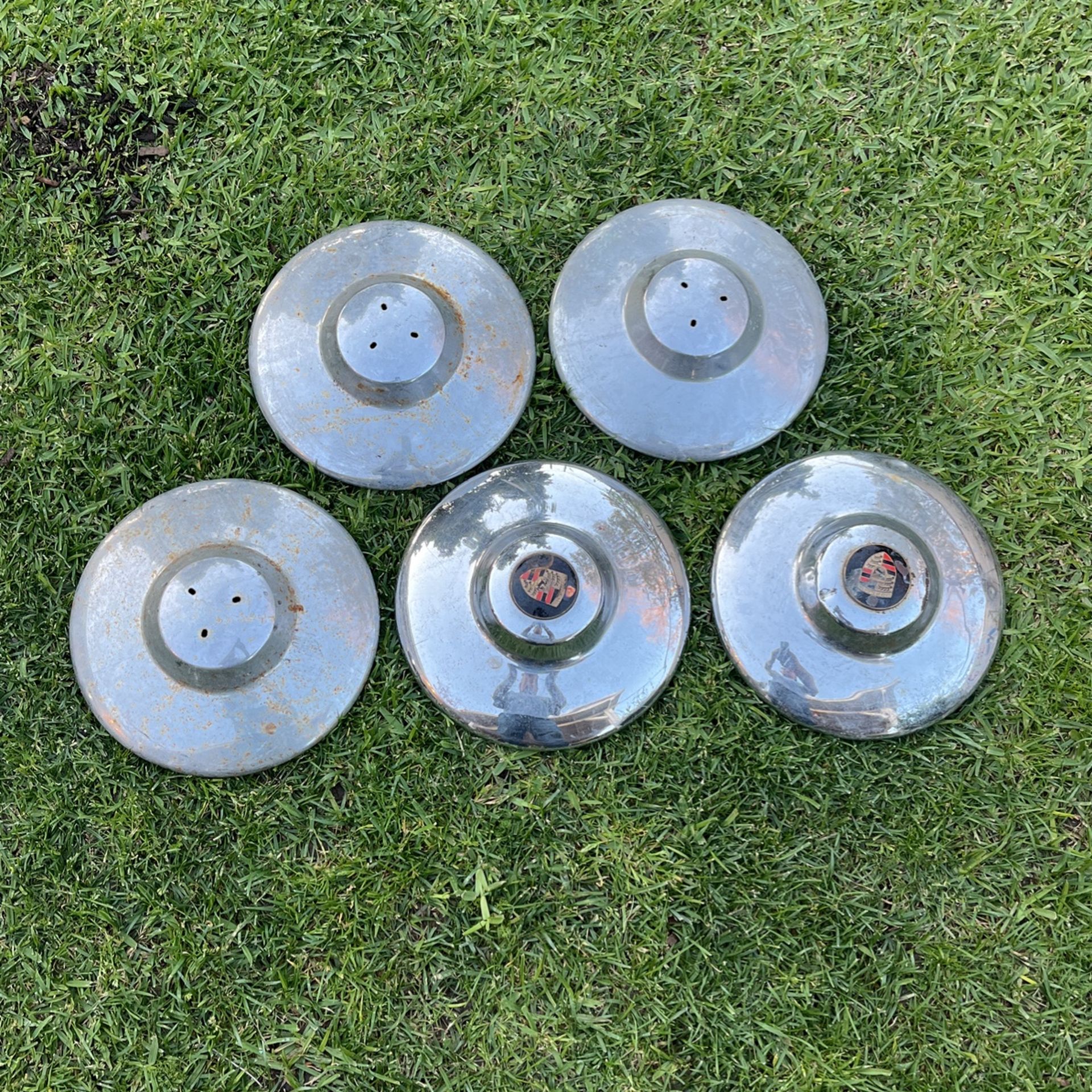 There are 5 total hubcaps. 3 are missing the center. All same heavy gauge stainless metal? Cheap price for all.