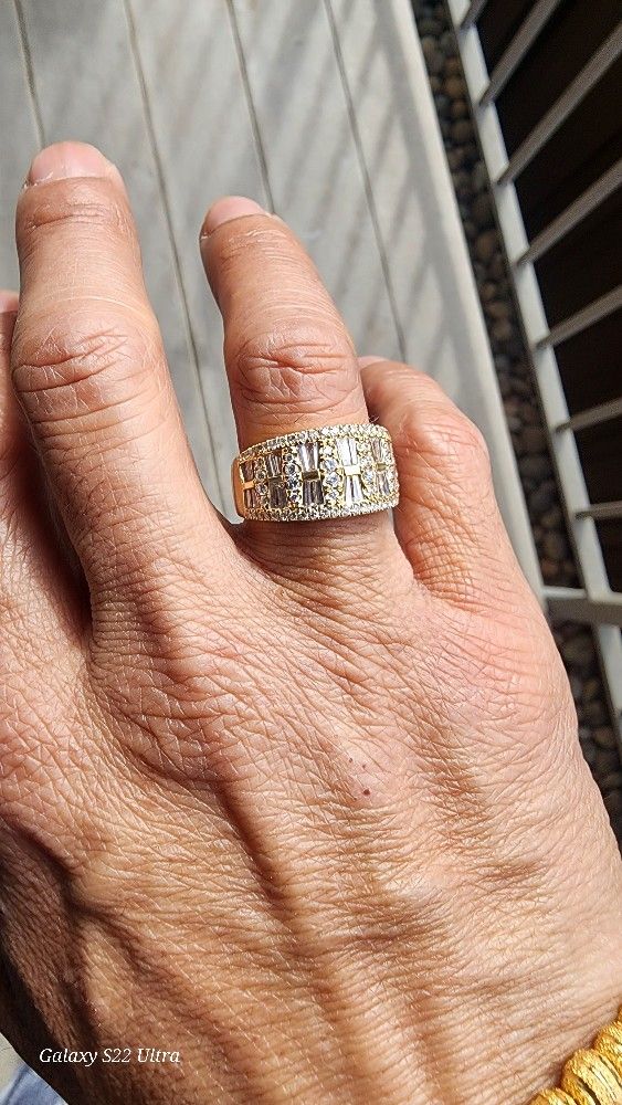 This is a fine item, beautiful, shiny and very striking, 18k gold and diamonds with encrusted baguettes, size 7 and a half, the size was changed to this one. and it can be made to your size, of course, with a jeweler, it could be for you and I'm asking $2,000.. on the market, its price is basically of $3,000... it starts to be your offers, maybe we will negotiate it... 100% real.