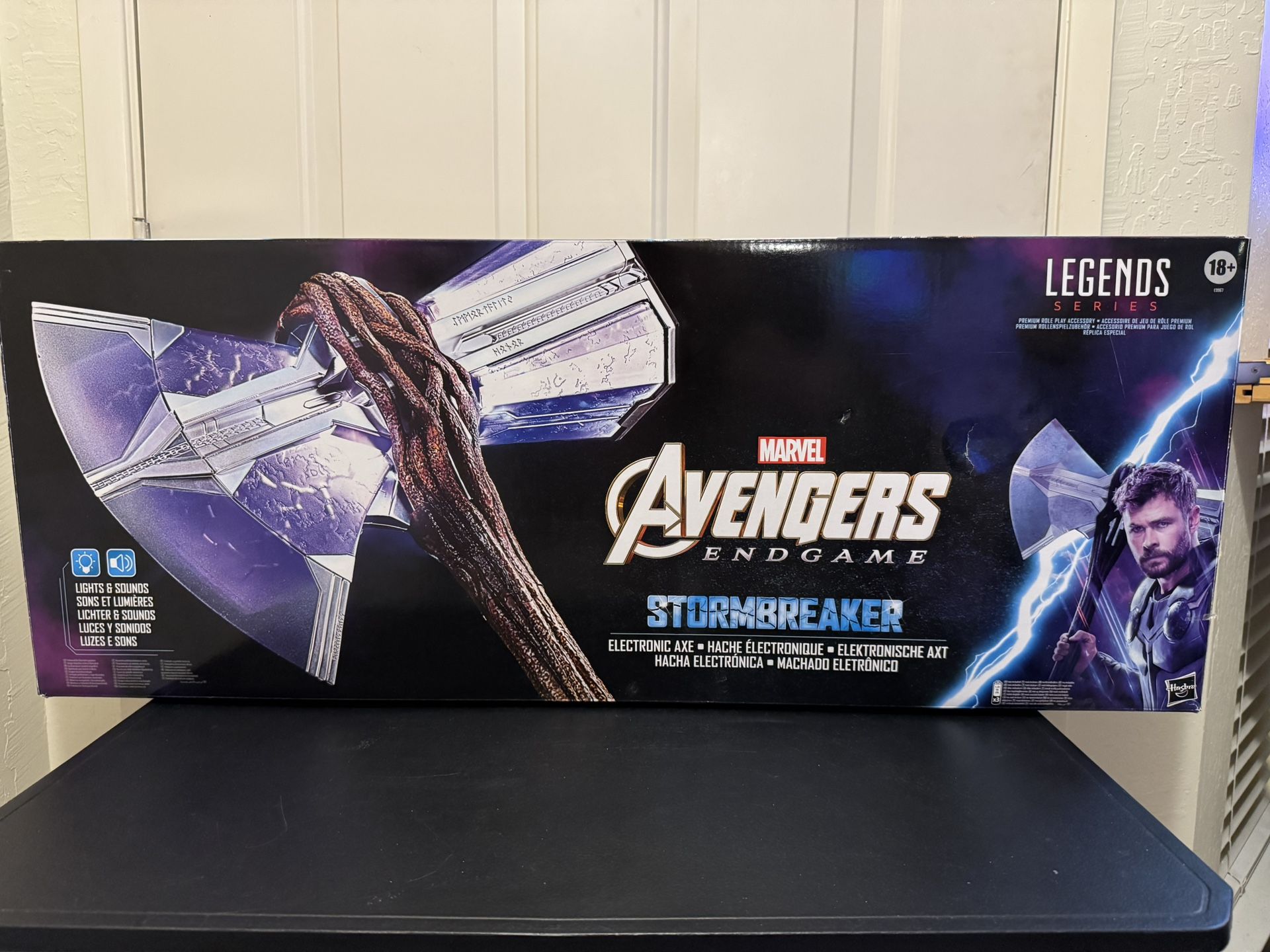 Very rare and fully functional! 1:1 full scale collectible Adult owned and only displayed Original box included Batteries included * GEAR UP LIKE THOR: When fans and collectors wield Marvel’s Stormbreaker Electronic Axe, they can imagine the adventures of the Asgardian Thor, son of Odin. * ELECTRONIC BATTLE AXE WITH SOUND FX: Fans and collectors alike can imagine charging into battle with the power of thunder rumbling in the palms of their hands with the Stormbreaker Axe with sound FX * INSPIRED BY AVENGERS: ENDGAME: Stormbreaker was forged to help the Avengers defeat the Mad Titan Thanos, and fans and collectors can create exciting moments with this electronic roleplay gear inspired by the Avengers: Endgame movie