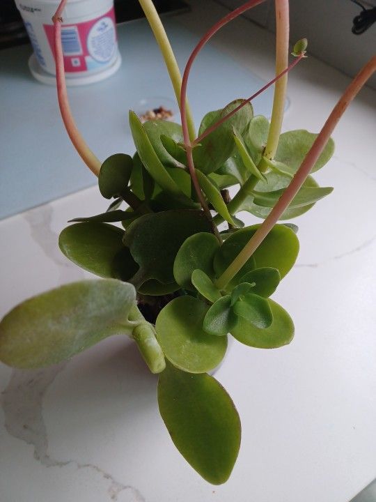 Well, rooted, growing spreads fast, Good for ground covering are low maintenance in a pot. Survives indoor or outdoors. It does have tiny tiny white flowers.I think they will blossom soon. I am so sorry.I don't know the name of the plant.