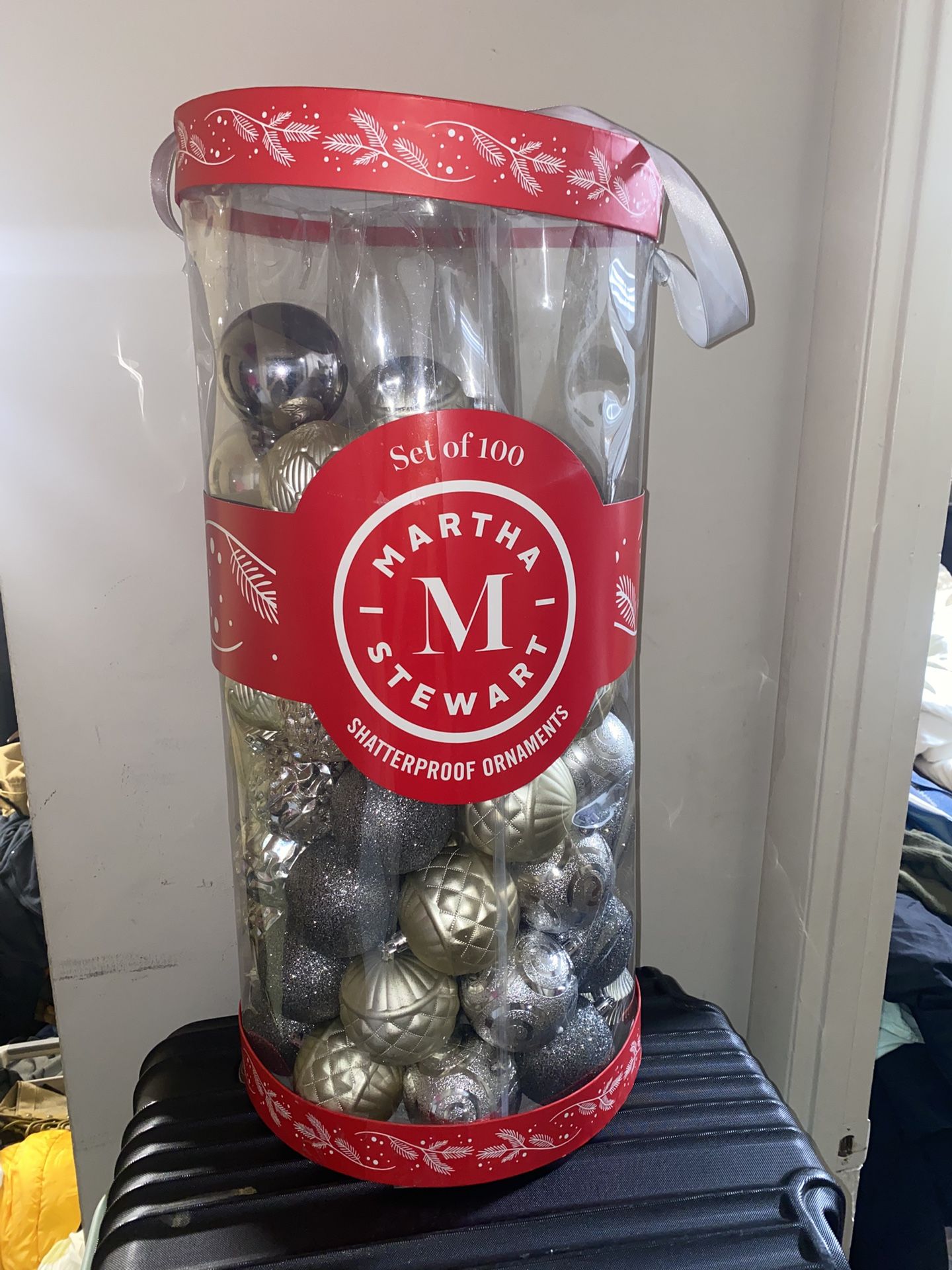 Container of 100 Silver shatterproof ornaments by Martha Stewart. Might be missing a few but definitely has dozens. Pick up available in Arlington VA