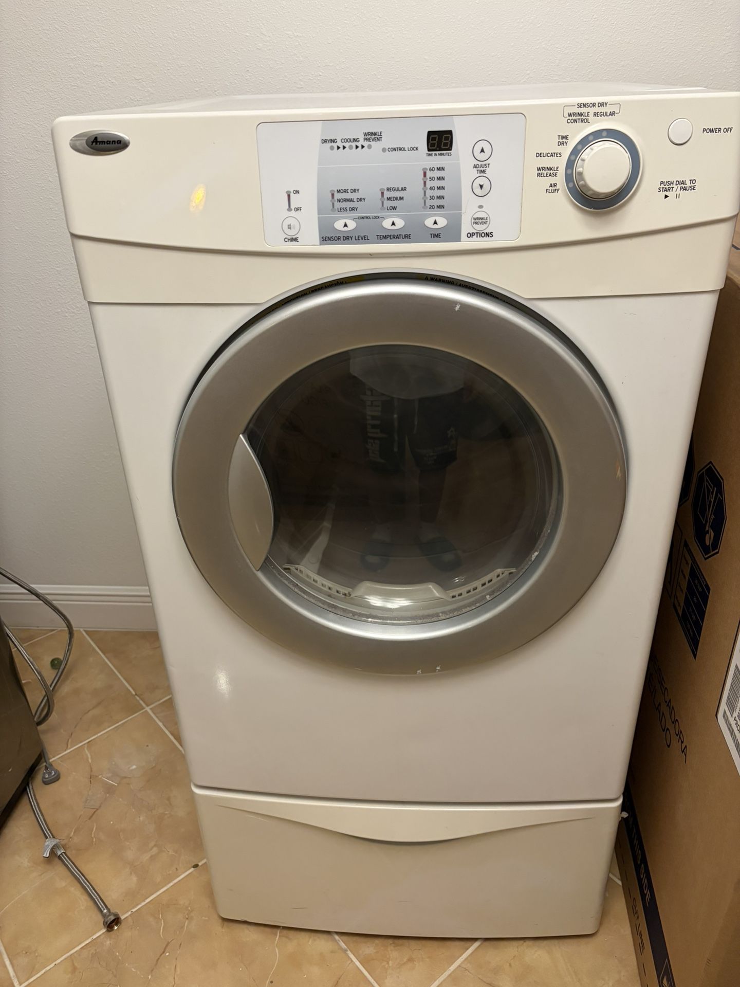 Amana front-load electric dryer in very good condition. Works great and dries clothes like it should. Clean inside and out with no problems. Has different dry settings, temperature options, and a front-load door that’s easy to use. I’m only selling it because I don’t need it anymore. Pickup only. Message me if you’re interested.