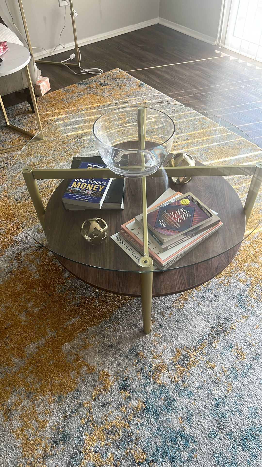Round brass coffee table in new box