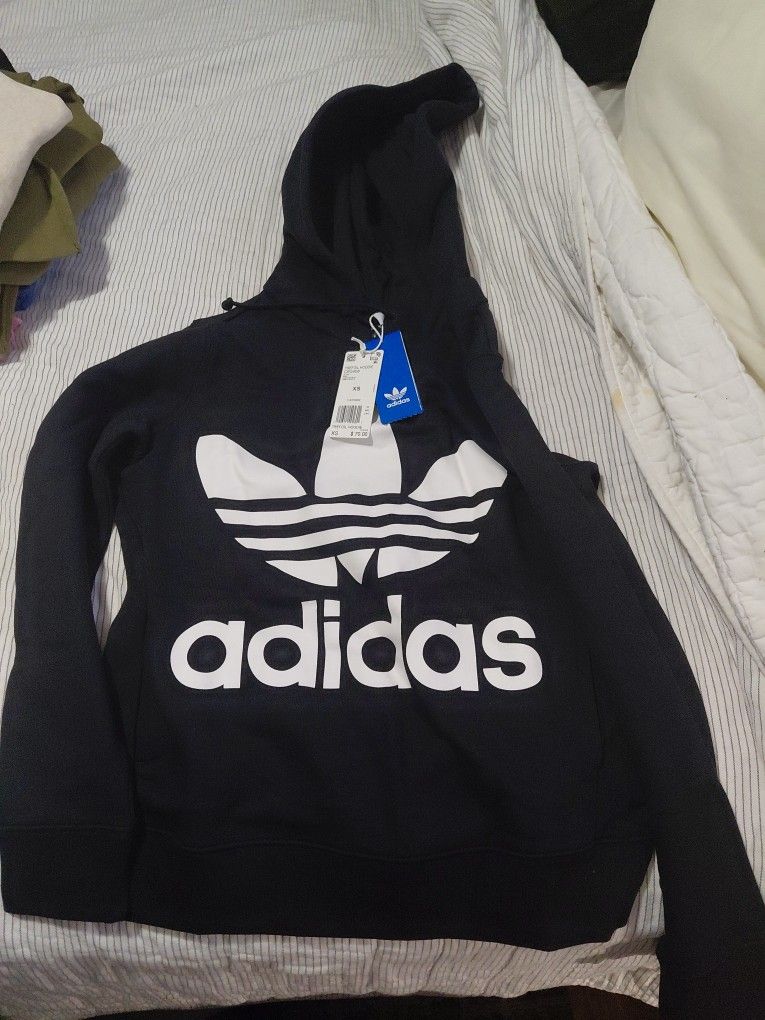Nice blk hoodie big Adidas logo in front this one sells for70 an at walmartin we cut ours in half so 30 is what I need they call this one trefoil hoodie don't forget the pennies on the dollar sale for the buyers its to make space for the new if you haven't made a purchase this would be a nice one tags still on it new