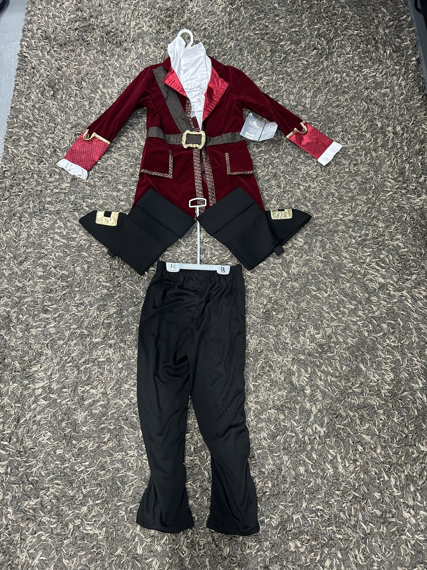 Cash only please. Smoke & pet free home. Nice quality disney costume of a pirate/Captain Hook. Includes the jacket, pants and “boots” which are shoe covers. Also including a pirate sword.