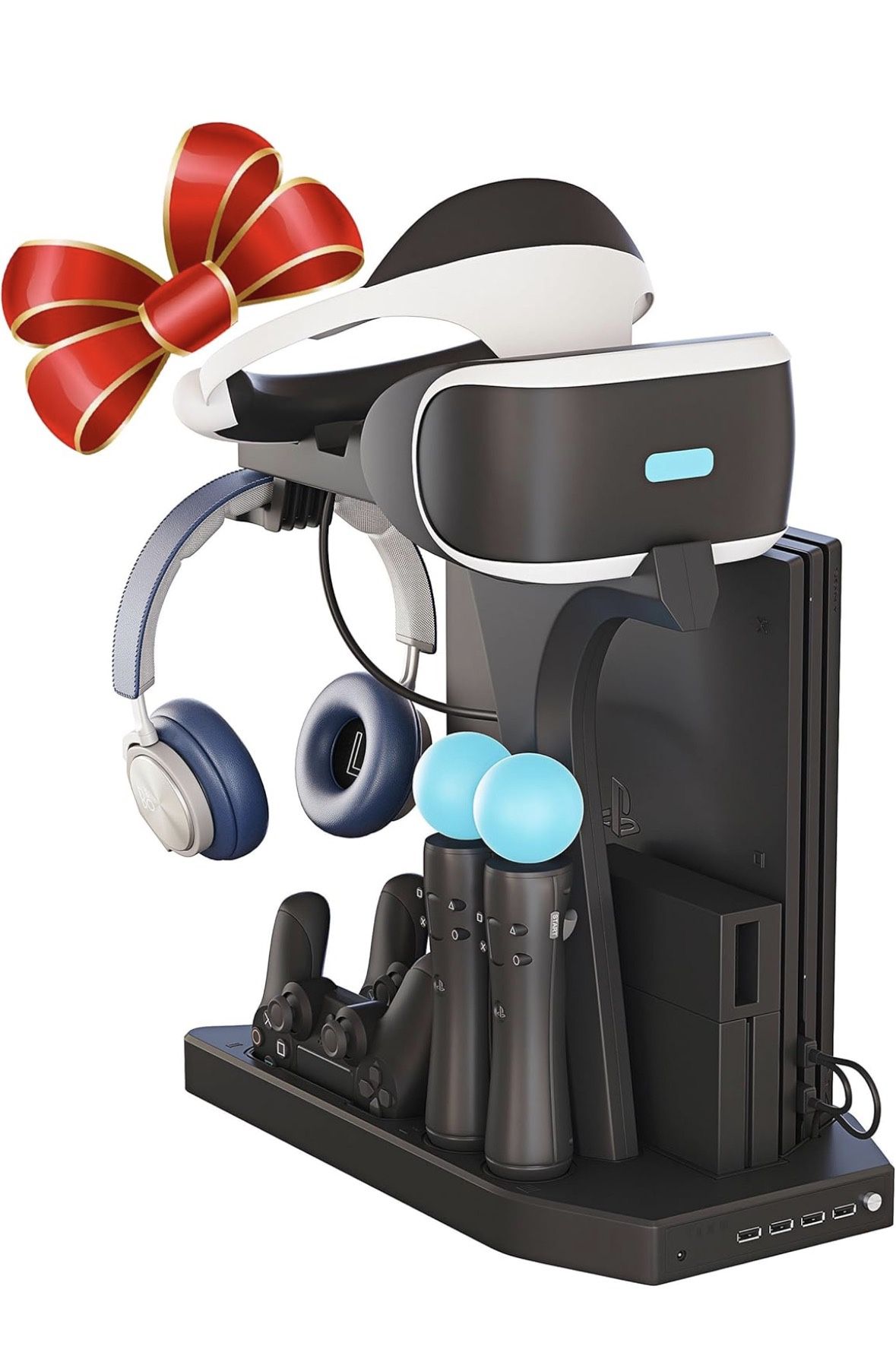 Always Ready to Play] Charge up to four controllers at once, ensuring your PlayStation 4 and PS5 VR setup is always ready for action without waiting for individual controllers to recharge. [Instant Charge Status for PlayStation 4 Controller]: Individual LED indicators display the charging progress of each PS4 DualShock controller, so you can instantly see which controllers are fully charged and ready for your next gaming session. [Universal Controller Support for PlayStation 4 Games]: Compatible with PSVR, PS4 DualShock, and PS Move controllers (sold separately), offering a convenient charging solution that keeps all your controllers powered and ready for your favorite PlayStation 4 games. [Organized and Stylish Setup] Durable, sleek design keeps your playstation controllers neatly organized while serving as a visually appealing display piece, enhancing the look of any gaming area. [Perfect Gift for Gamers] Makes a thoughtful gift for gamers of all ages, ideal for Christmas, birthdays, or special occasions, combining practicality, style, and convenience in one accessory. [Clutter-Free Gaming Area] Keeps your gaming space tidy and controllers always ready, making it easier to start playing immediately while maintaining a clean, organized setup.