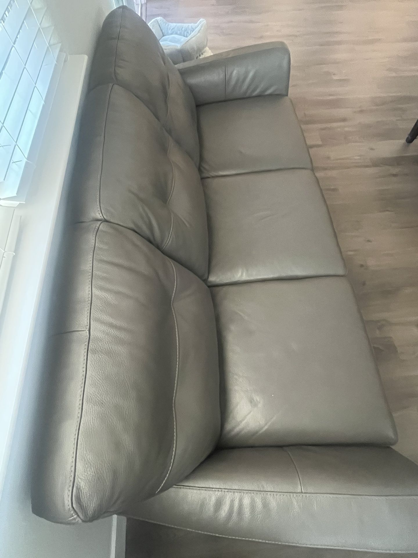 Beautiful Gray Natuzzi Leather Sofas Set. Super comfy to enjoy with your family.