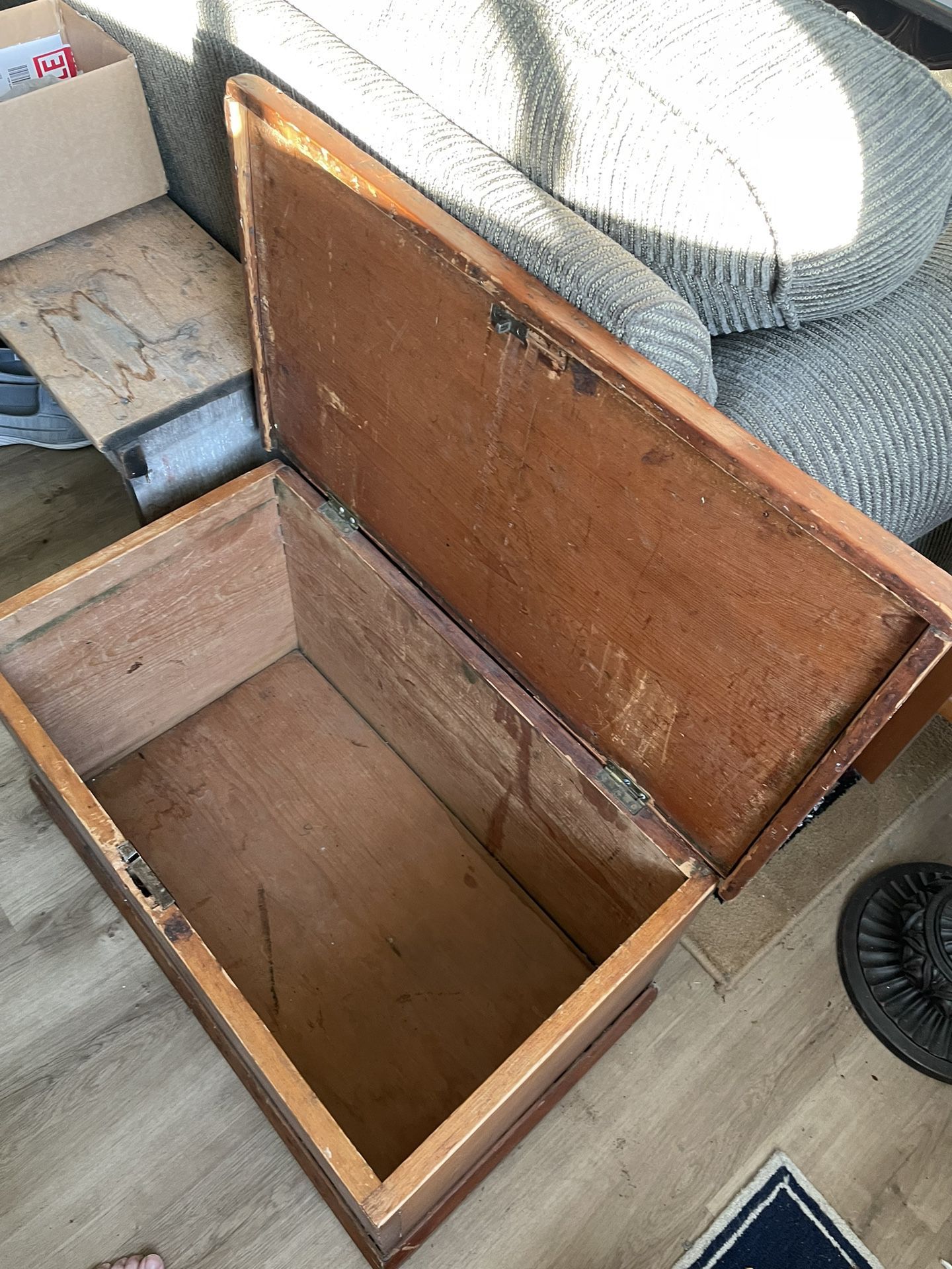 Amish Blanket Chest possibly from late 1800’s to early 1900s. Fair condition. Appraisal given by Kelly Schultz Antiques in Clarence, NY. Glass top is removable. WILL DELIVER to your front door if paid for and you are local.
