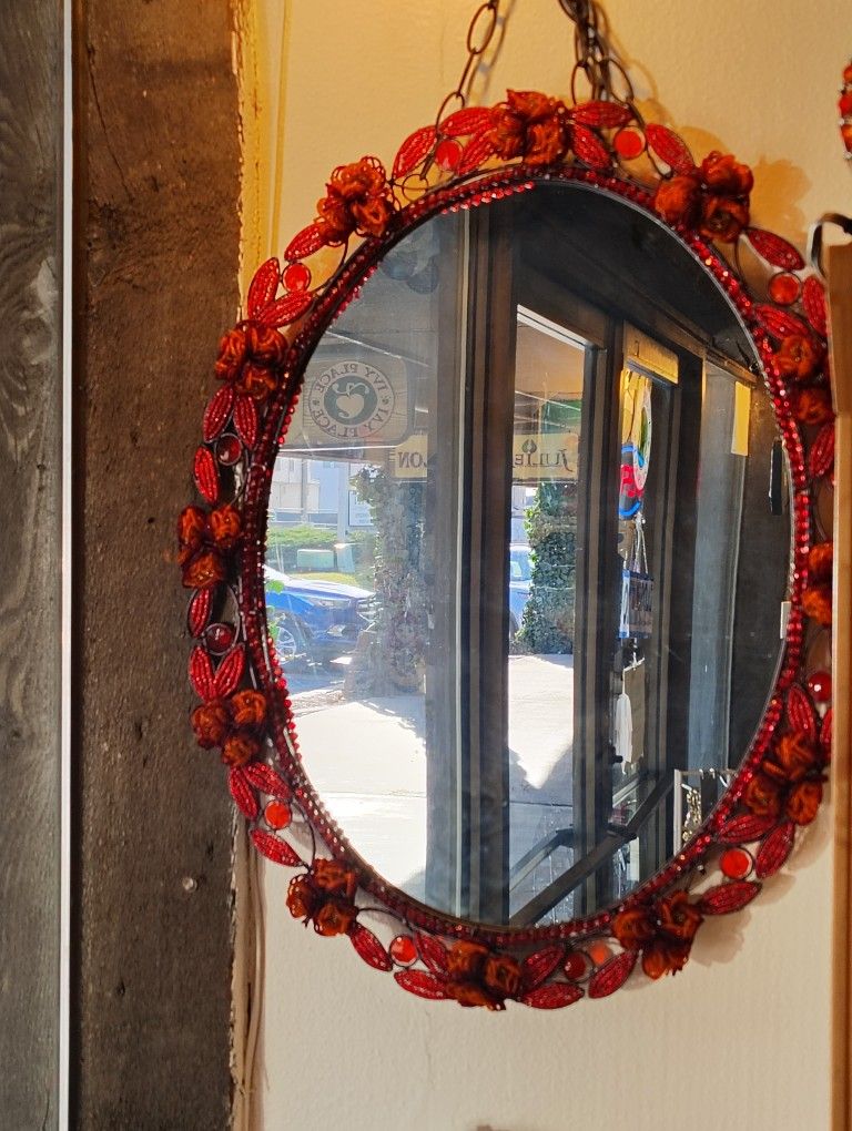 Mirror, Hand Made Frame with Beads 2 available Dimensions 24 by 20 Color: red / orange New in a box Location : 4700 s 900 e Murray UT 84117 Ivy place shopping village