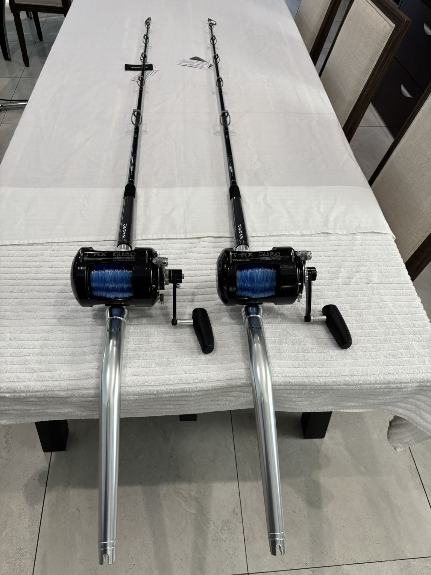 Avet 50W 2 Speed T-RX Quad 100 Lb drag on New Daiwa Tanacom 40-100lb Bent, But Swivel Tip Rods