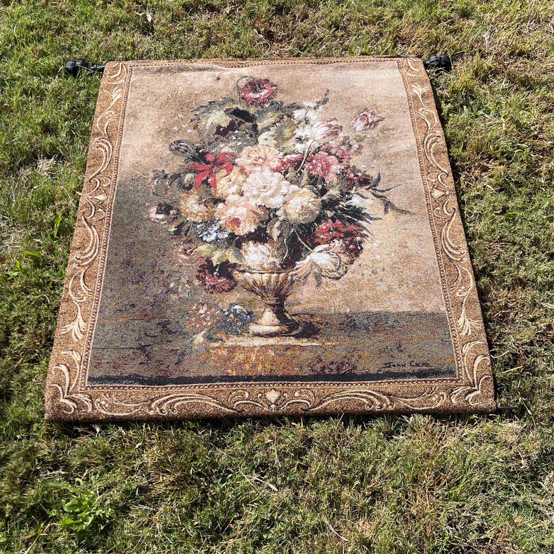 46”c46”. Multicolor floral. Top hanging rod and bottom weighted rod. Excellent condition.