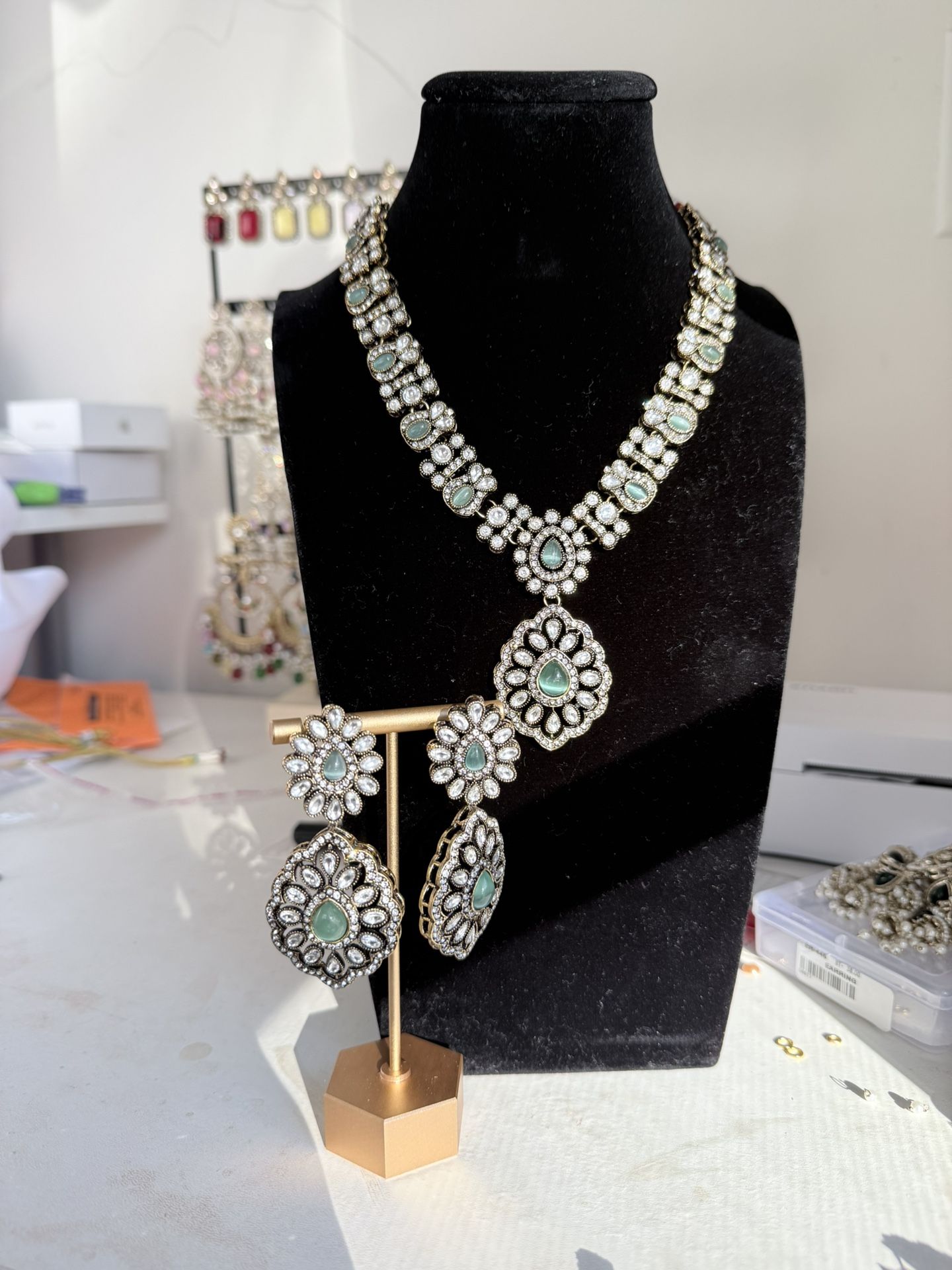Classic Kundan set with mint stones and American diamonds Colors avaible: dark pink, Green, White, Pink, Mint #boston #nyc #desi #jewelry #desiwear