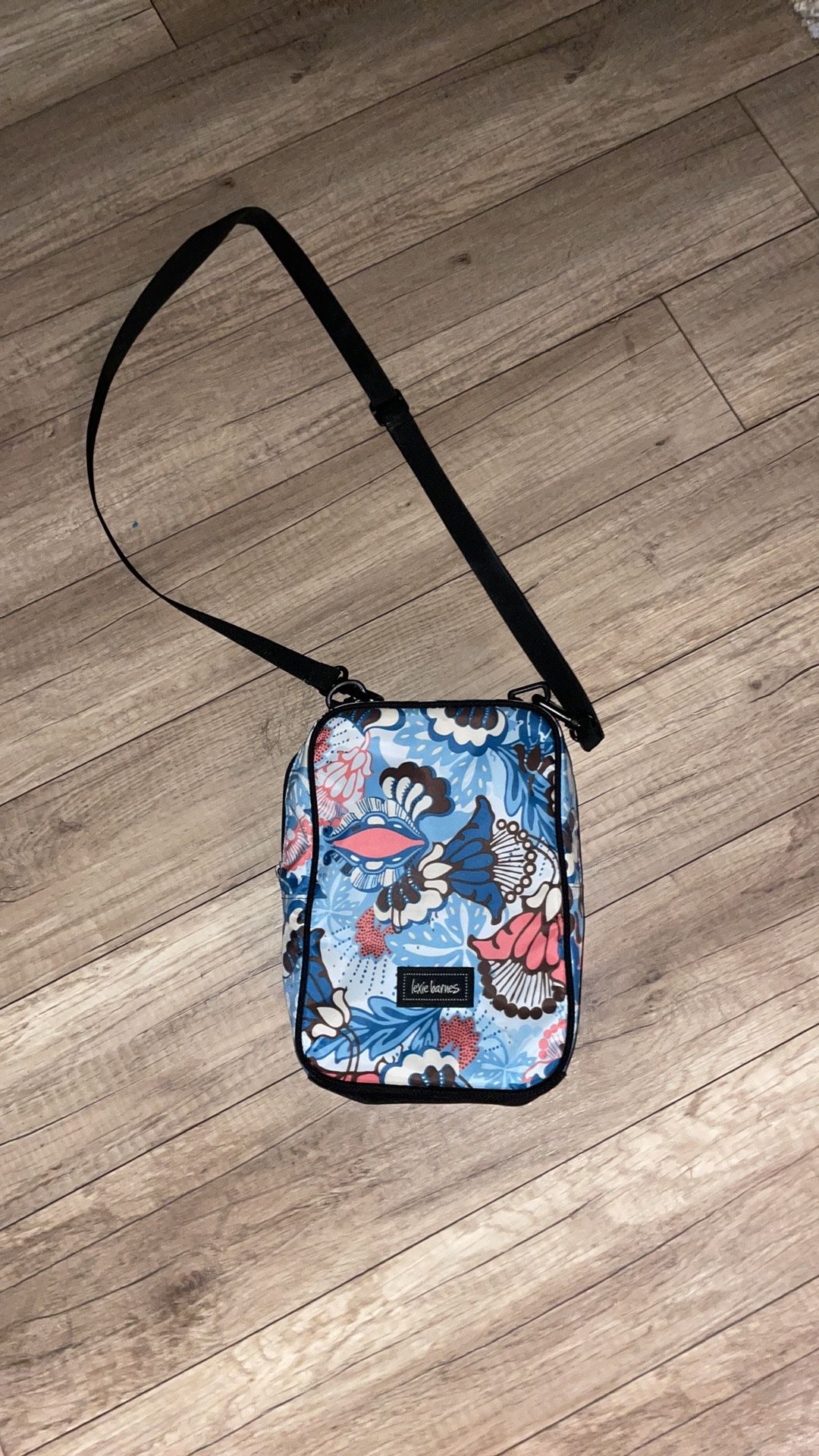 Lexie Barnes Floral Blue Black Material Crossbody Cross Body Purse Satchel