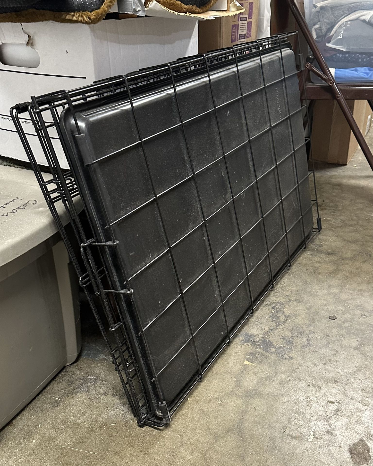 Double door dog crate for intermediate size dog, 40-70 lbs dog…. Brand new… never used. Had to buy a bigger one for larger dog. Size: 36.6”L x 21.9”W x 24.5”H Brand Midwest Homes for Pets.