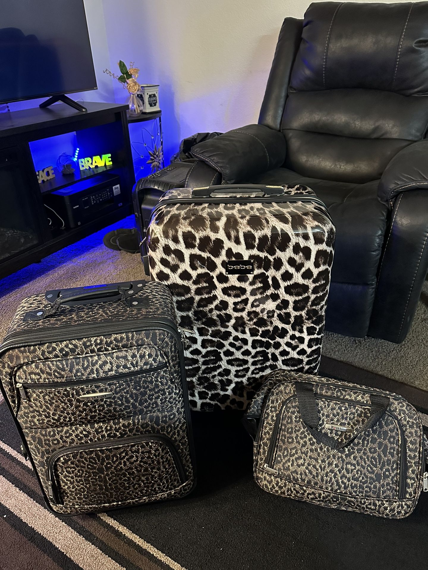 Rockland Medium & Small Matching & Large Bebe Cheetah Print Luggage $100 For All 3 Or $50 For Rockland Set & $60 for Large Bebe Luggage