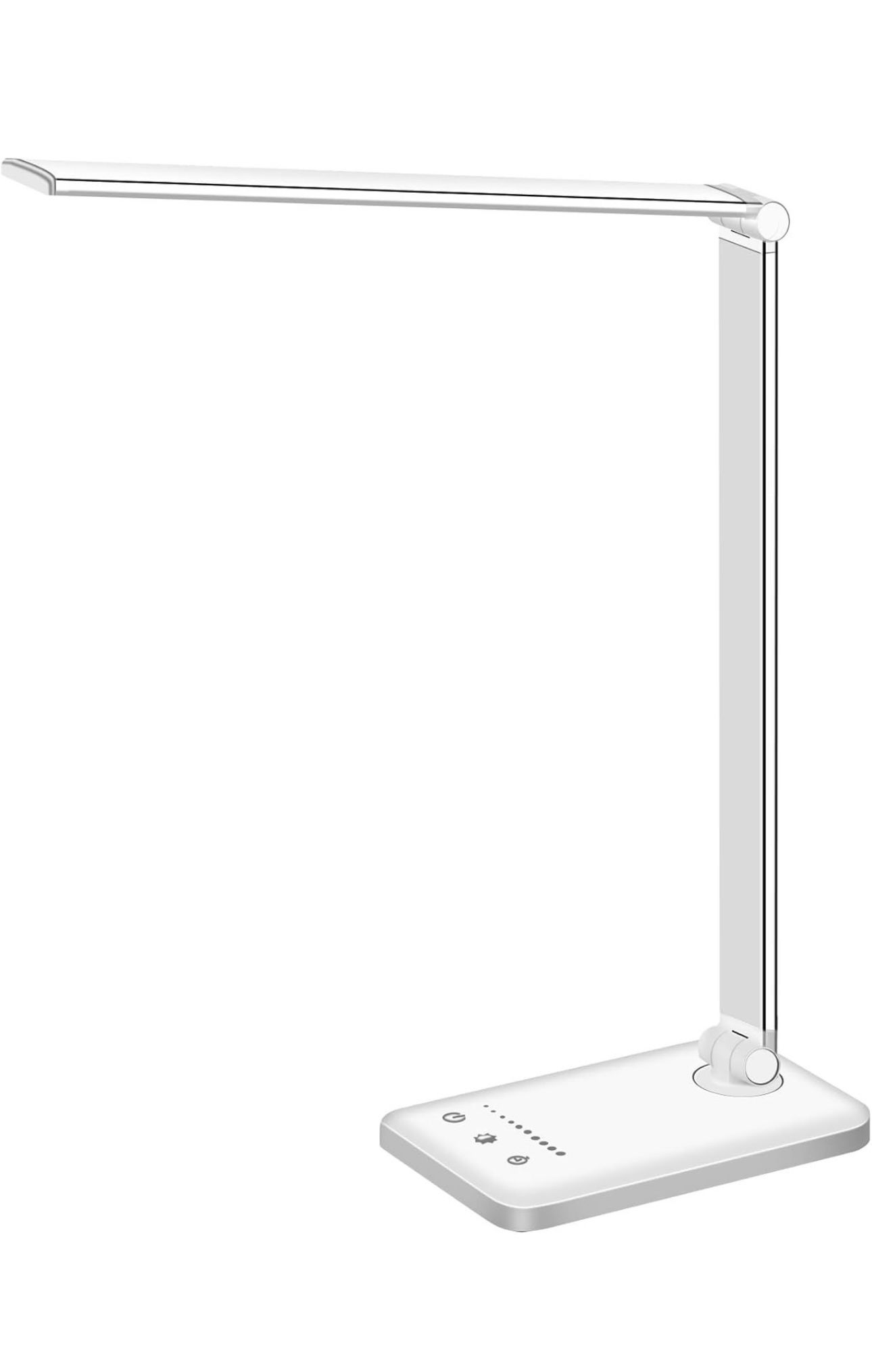 White crown LED Desk Lamp Dimmable Table Lamp Reading Lamp with USB Charging Port, 5 Lighting Modes, Sensitive Control, 30/60 Minutes Timer (White, First-Generation)