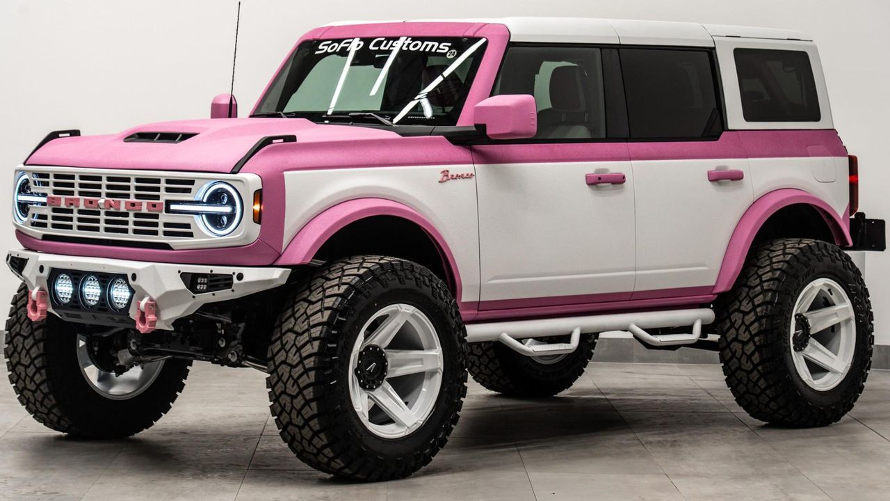 "<p style=""margin: 0px; padding: 0px; box-sizing: border-box;""><strong style=""margin: 0px; padding: 0px; box-sizing: border-box;"">Custom SoFlo Bronco Retro Edition</strong></p><p style=""margin: 0px; padding: 0px; box-sizing: border-box;"">The 2025 Pink SoFlo Customs Bronco Retro is a bold reimagining concept of the iconic SUV, combining retro-inspired styling with modern upgrades. Finished in a durable Kevlar painted finish and designed with a lifted stance, that delivers a commanding presence both on and off the road. Blending performance, durability, and head-turning design, it’s built for rugged adventures yet refined enough for everyday driving.</p><p style=""margin: 0px; padding: 0px; box-sizing: border-box;""><br style=""margin: 0px; padding: 0px; box-sizing: border-box;""></p><hr style=""margin: 0px; padding: 0px; box-sizing: border-box;""><p style=""margin: 0px; padding: 0px; box-sizing: border-box;""><strong style=""margin: 0px; padding: 0px; box-sizing: border-box;""><u style=""margin: 0px; padding: 0px; box-sizing: border-box;"">Key Highlights:</u></strong></p><p style=""margin: 0px; padding: 0px; box-sizing: border-box;""><strong style=""margin: 0px; padding: 0px; box-sizing: border-box;""><br style=""margin: 0px; padding: 0px; box-sizing: border-box;""></strong></p><ul style=""margin: 0px; padding: 0px; box-sizing: border-box;""><li style=""margin: 0px; padding: 0px; box-sizing: border-box;"">Year: 2025</li><li style=""margin: 0px; padding: 0px; box-sizing: border-box;"">Color: Pink Kevlar with White Retro Panels</li><li style=""margin: 0px; padding: 0px; box-sizing: border-box;"">Trim: Retro Edition</li><li style=""margin: 0px; padding: 0px; box-sizing: border-box;"">Top: Hardtop – Kevlar White</li><li style=""margin: 0px; padding: 0px; box-sizing: border-box;"">Lift: 3.5” Lift</li><li style=""margin: 0px; padding: 0px; box-sizing: border-box;"">Tires: 37” Ridge Blade</li><li style=""margin: 0px; padding: 0px; box-sizing: border-box;"">Wheels: 20” White APOC</li><li style=""margin: 0px; padding: 0px; box-sizing: border-box;"">Hood: SoFlo Customs Stallion Hood </li><li style=""margin: 0px; padding: 0px; box-sizing: border-box;"">Grill: Heritage Design</li><li style=""margin: 0px; padding: 0px; box-sizing: border-box;"">Bumper: Baja Front and Rear Bumper</li><li style=""margin: 0px; padding: 0px; box-sizing: border-box;"">Sidesteps: Nerf Steps </li><li style=""margin: 0px; padding: 0px; box-sizing: border-box;"">Bronco Script Badging </li></ul><p style=""margin: 0px; padding: 0px; box-sizing: border-box;""><br style=""margin: 0px; padding: 0px; box-sizing: border-box;""></p><hr style=""margin: 0px; padding: 0px; box-sizing: border-box;""><p style=""margin: 0px; padding: 0px; box-sizing: border-box;""><strong style=""margin: 0px; padding: 0px; box-sizing: border-box;""><u style=""margin: 0px; padding: 0px; box-sizing: border-box;"">Comfort & Convenience:</u></strong></p><p style=""margin: 0px; padding: 0px; box-sizing: border-box;""><br style=""margin: 0px; padding: 0px; box-sizing: border-box;""></p><ul style=""margin: 0px; padding: 0px; box-sizing: border-box;""><li style=""margin: 0px; padding: 0px; box-sizing: border-box;"">Custom All White with Pink Diamond Leather Seating – Premium leather build for rugged yet stylish durability </li><li style=""margin: 0px; padding: 0px; box-sizing: border-box;"">12"" SYNC® 4 Touchscreen</li><li style=""margin: 0px; padding: 0px; box-sizing: border-box;"">Wireless Apple CarPlay & Android Auto</li><li style=""margin: 0px; padding: 0px; box-sizing: border-box;"">Push-Button Start</li><li style=""margin: 0px; padding: 0px; box-sizing: border-box;"">Rear View Camera</li><li style=""margin: 0px; padding: 0px; box-sizing: border-box;"">G.O.A.T. Modes® Terrain Management</li></ul><p style=""margin: 0px; padding: 0px; box-sizing: border-box;""><br style=""margin: 0px; padding: 0px; box-sizing: border-box;""></p><hr style=""margin: 0px; padding: 0px; box-sizing: border-box;""><p style=""margin: 0px; padding: 0px; box-sizing: border-box;""><strong style=""margin: 0px; padding: 0px; box-sizing: border-box;"">Dealership info - CALL or VISIT ANY OF OUR 3 LOCATIONS</strong></p><p style=""margin: 0px; padding: 0px; box-sizing: border-box;""><strong style=""margin: 0px; padding: 0px; box-sizing: border-box;""><br style=""margin: 0px; padding: 0px; box-sizing: border-box;""></strong></p><p style=""margin: 0px; padding: 0px; box-sizing: border-box;""><strong style=""margin: 0px; padding: 0px; box-sizing: border-box;""><u style=""margin: 0px; padding: 0px; box-sizing: border-box;"">Ft. Lauderdale:</u></strong></p><p style=""margin: 0px; padding: 0px; box-sizing: border-box;"">1430 W Broward Blvd, Fort Lauderdale, FL 33312<br style=""margin: 0px; padding: 0px; box-sizing: border-box;"">(954) 807-4139</p><p style=""margin: 0px; padding: 0px; box-sizing: border-box;""><br style=""margin: 0px; padding: 0px; box-sizing: border-box;""><st