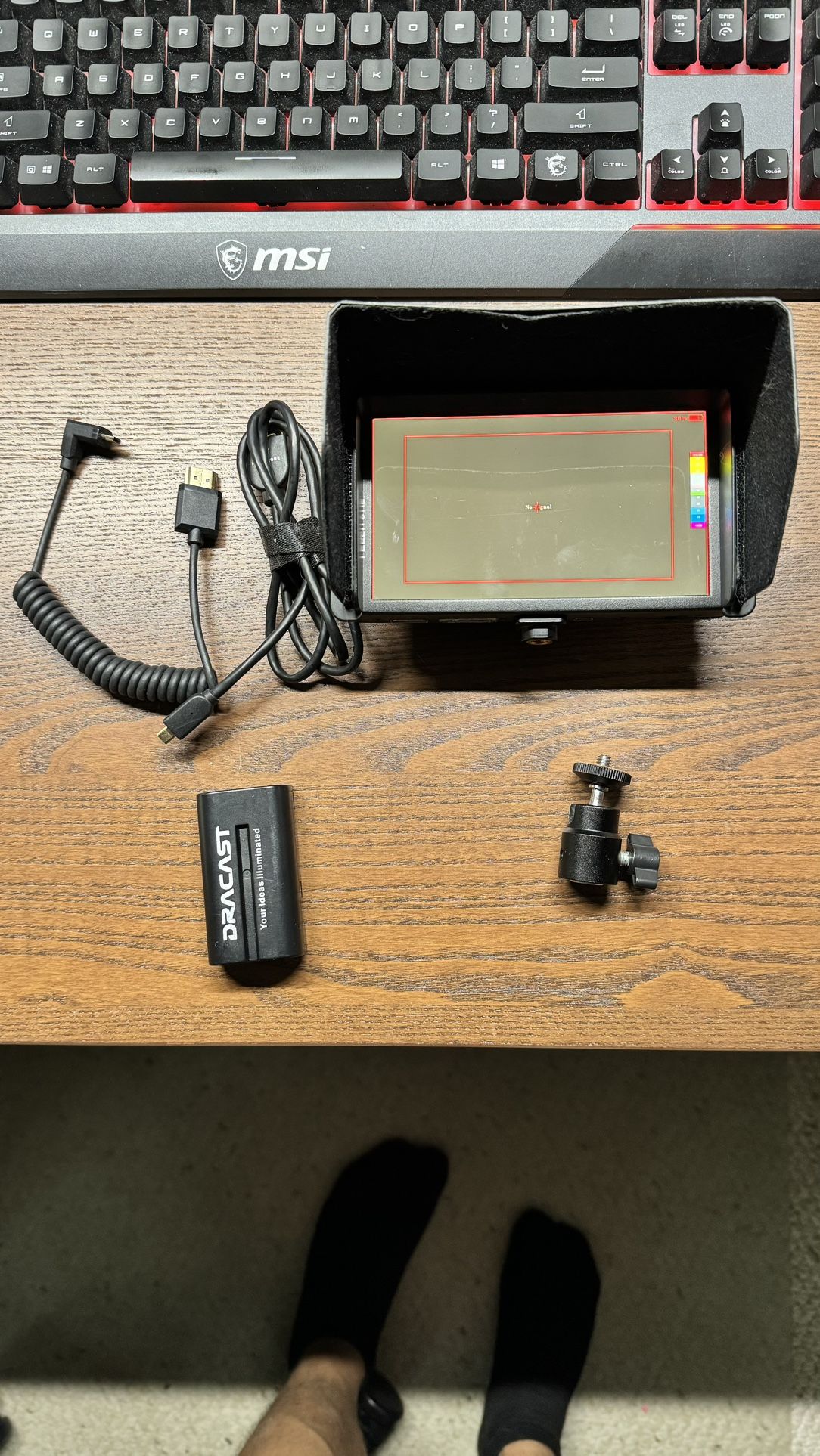 4K Monitor with Original box False colors, peaking, exposure Histogram, anamorphic mode, grid capabilities Detachable and foldable sunshade 2NPF Batteries Ball head 1 4K micro HDMI to HDMI Cable