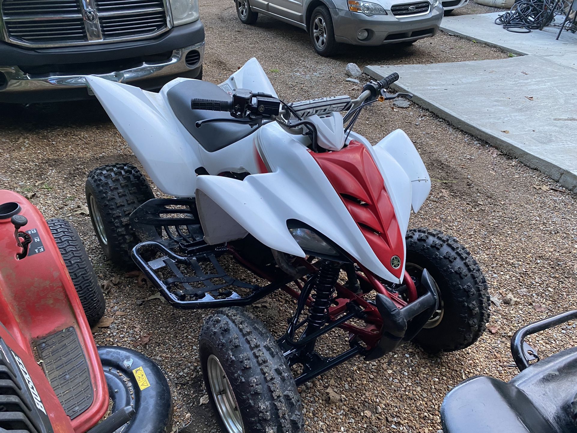 All new parts (Cylinder head and piston cam timing chain Valves and rockers OEM CDI box tires and rear wheel bearing and hub assembly Rear brake caliber and brakes pads carburetor and Petcock Spark plug and ignition coil )Cranks straight up! 2011 Raptor 350. Strong running and sounds great!!
