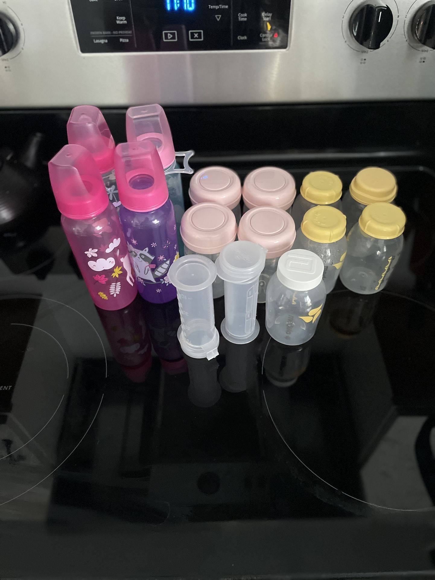 I have 4 girl bottles and 11 storage containers. The bottles are brand new never used and the containers are sterilized.