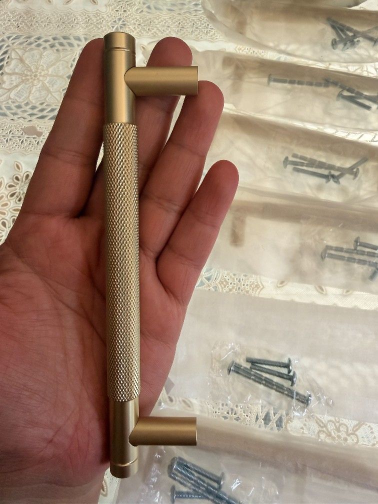 6 Pack 5Inch Kitchen Cabinet Handles Brushed Gold Knurled Cabinet Pulls Gold Drawer Pulls Kitchen Hardware